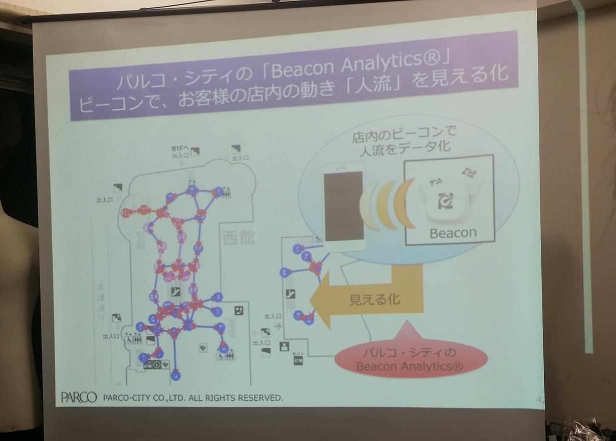 唐笠氏:ビーコンを使った施策でいうと、名古屋パルコ館内にビーコンを多数設置し、お客様に専用のアプリをインストールしたスマホを持ってお買い物をしていただくという実験をしました。