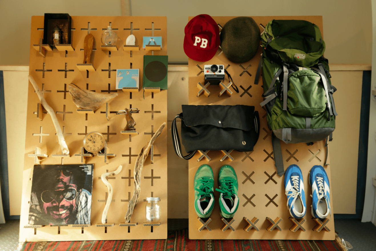 Dplusは強化ダンボール「ハイプルエース」を使用したオープンデザイン家具で、かざるものを選び抜くことを通して自分を表現をする、自分の生活を少しづつ磨いていくための家具です。