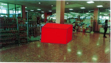 【ミスターマックス 久留米インター店】風除室(エレベーター前) 販促プロモーションや物販用途に最適な総合ディスカウントストアの催事イベントスペース