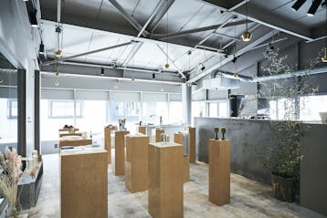 【自由が丘駅1分】POPUPや展示会・撮影に適した人気建築家がデザインした無機質カフェ&美容室内の店内イベントスペース