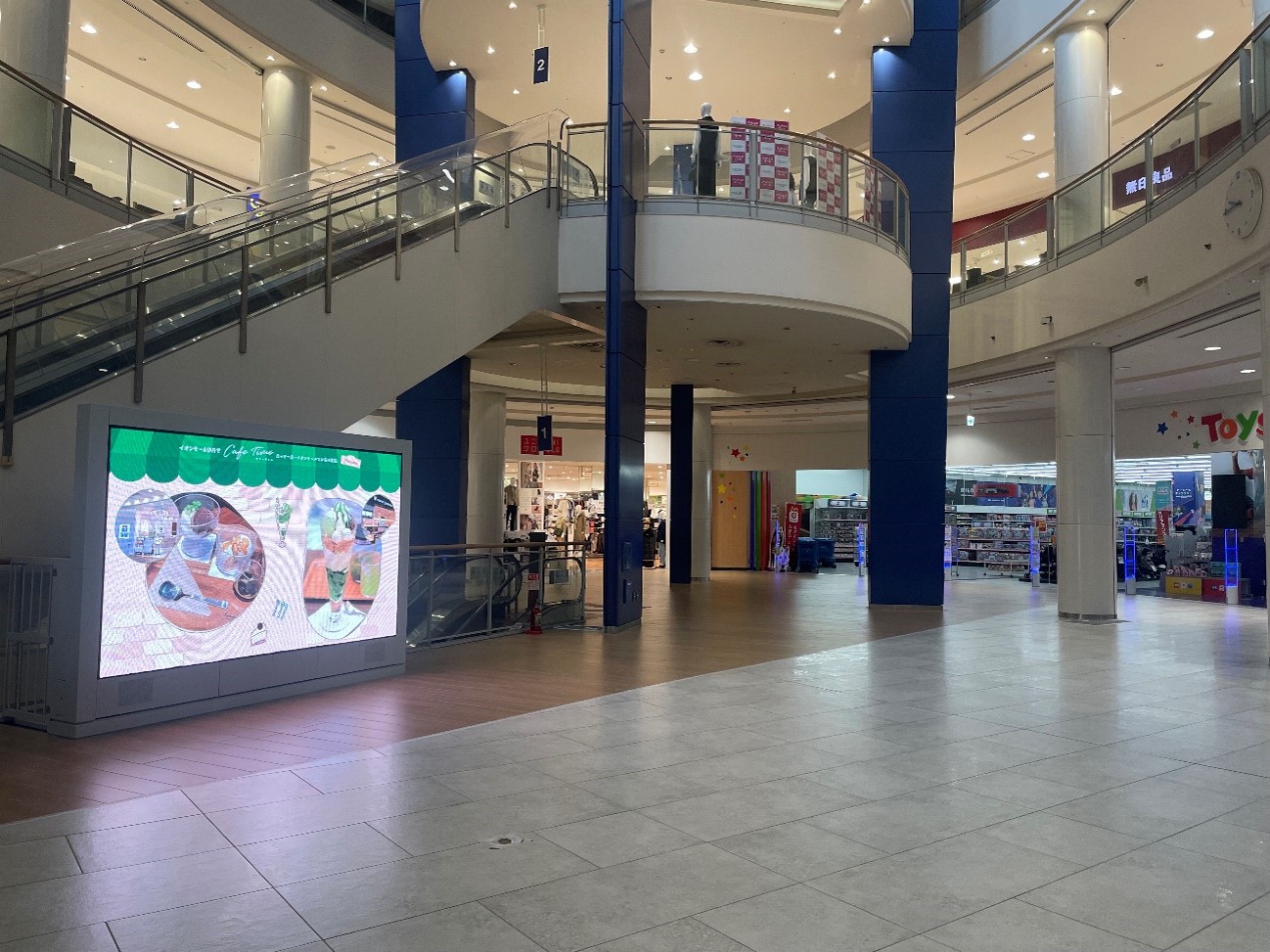 トイザらス・ベビーザらス、シネマコンプレックス、アミューズメントなどの大型店舗側の1〜4Fまで吹き抜けの明るい、館内最大イベントスペースとなります。