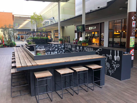 面積 約8坪(約26m²) 使用料 【平日】60,000円(税抜)/日 【土日祝】120,000円(税抜)/日 図面 しまなみダイニング催事スペース 特徴 ・小スペース ・屋外(駐車場含む) ・電源あり(100V) ・最大使用電力(1,500W)