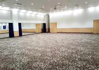 防音設備も整っており、阿波踊りの練習にも最適です。 面積 67坪(220m²) 使用料 【平日】60,000円(税抜)/日 【土日祝】120,000円(税抜)/日 図面 イオンホール 特徴 ・高さ制限1.5m