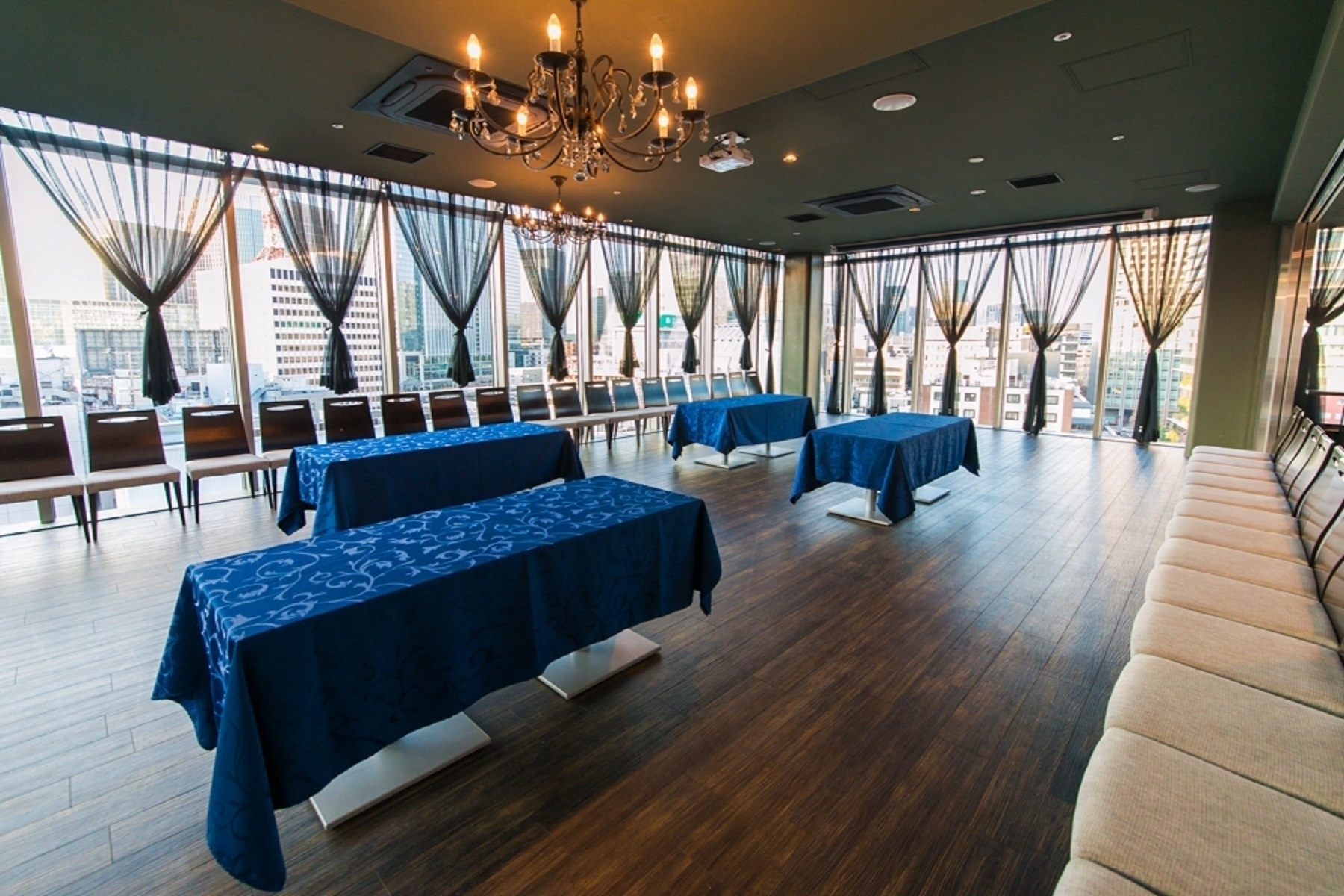 ※上記は平日5時間利用の場合の料金です。 《レンタルスペースプラン》 ◇月~木 AM:25,000円/h(税込) PM:30,000円/h(税込) ◇金曜日 AM:25,000円/h(税込) PM:35,000円/h(税込) ◇土曜日 終日:40,000円/h(税込) ◇日曜/祝日 終日:35,000円/h(税込) ※AMは10時~17時/PMは17時~23時です。 ※5時間から貸切可能です。 【ドリンク飲み放題追加】 ・2時間1,500円/人数+スタッフ派遣料2時間10,000円/名 ・チケット制500円/1杯+スタッフ派遣料2時間10,000円/名 ※長期割引については別途お問い合わせください。 GW期間営業日・料金のご案内 2025/4/26(土)~5/9(金):全プラン土曜日料金にて営業となります。