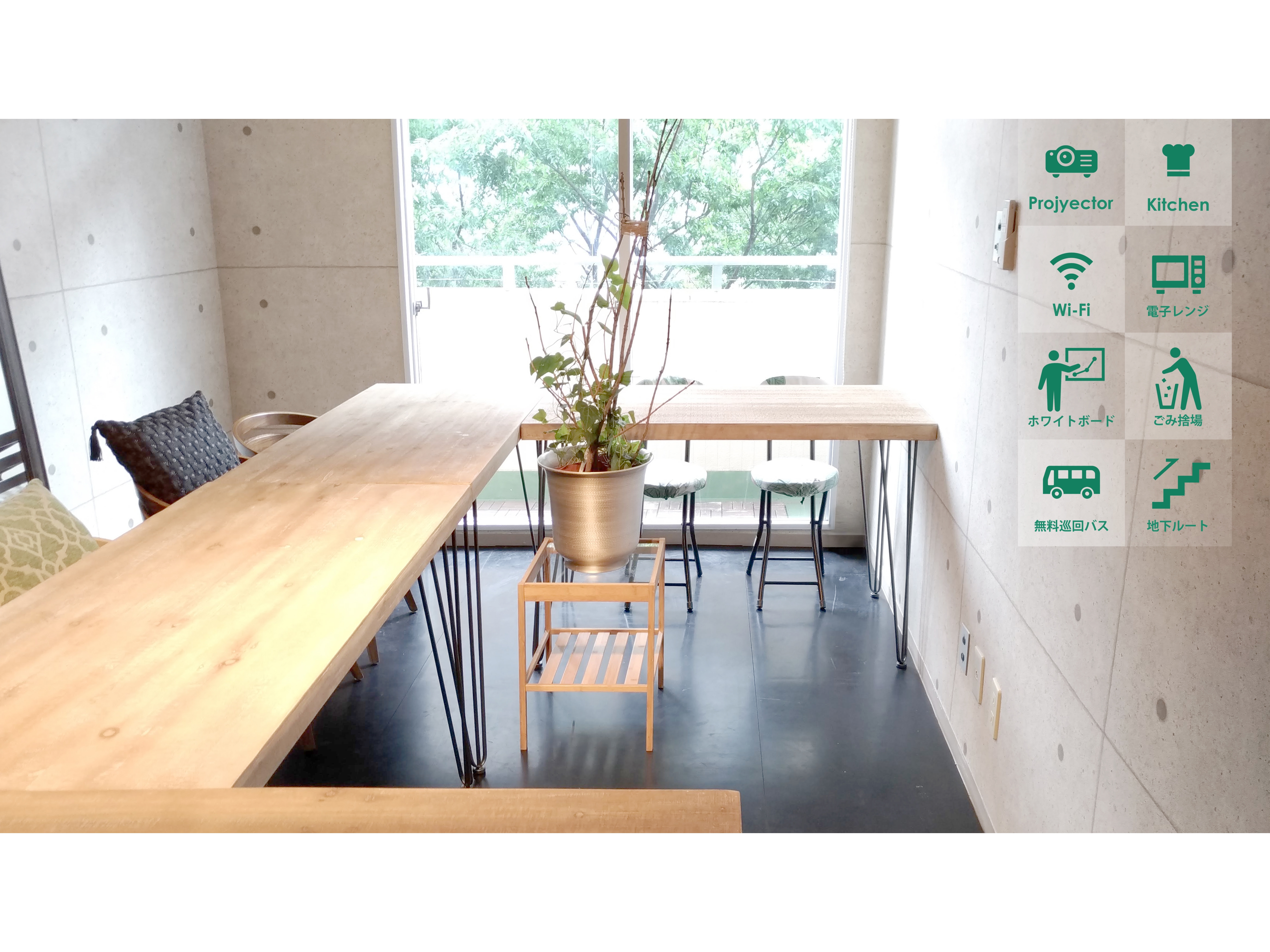 | 利用可能時間 | 06:00〜22:00 ※準備時間を含めた、スペースを利用できる時間です |
