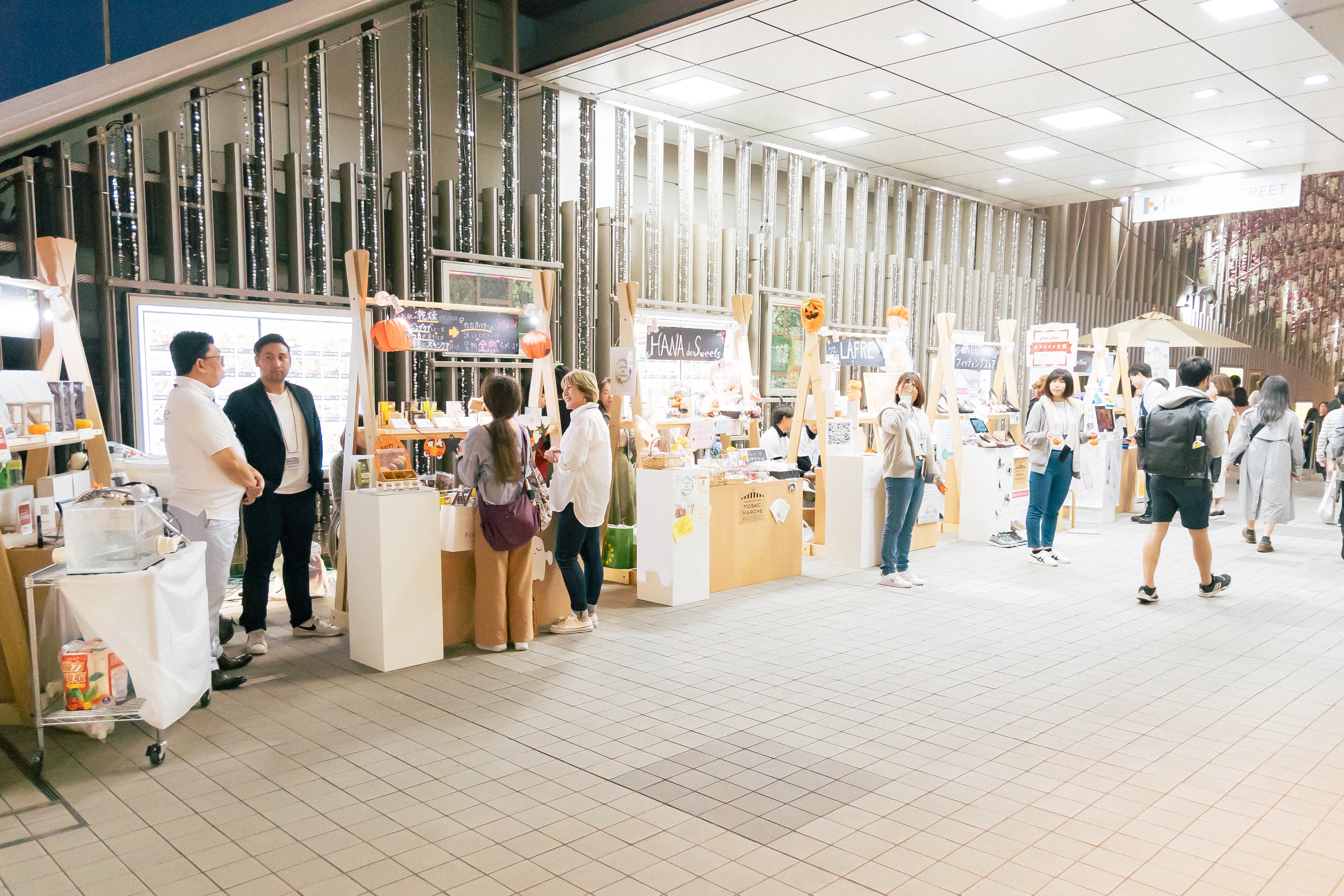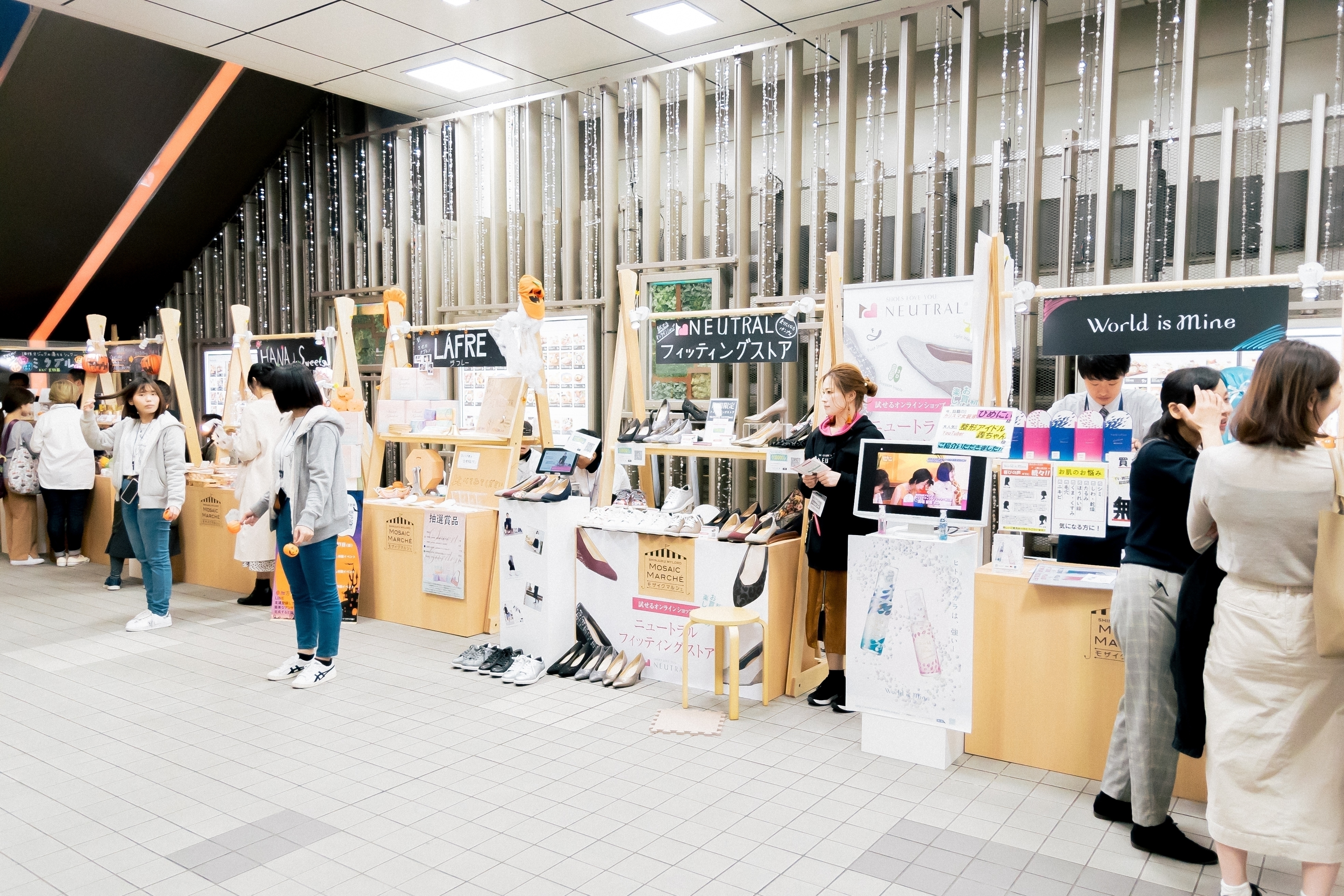 新宿駅南口・西口より徒歩1分、新宿ミロードのモザイク通りで、最大7店舗の個性豊かなポップアップストアを集めた『モザイクマルシェ』が2020年4月以降で開催予定。モザイクマルシェは2018年末からスタート、多くの方にお越しいただき賑わいを生んでいます。マルシェを通じてあなたの商品をアピールしてみませんか? ※2020年2・3月の開催はお見送りとなりました。 モザイクマルシェは新宿駅南口と西口をつなぐモザイク通り内で開催します。月に1度(時期により2~3カ月に1度)のイベントですが、学生から会社員、10~30代女性を中心に幅広い層の方へのアプローチが可能です。 ※出店に際しては、イベント事務局の審査が入ります。 【出店カテゴリー】 モザイクマルシェに訪れるお客様にとって、"新たなお気に入りアイテムとの出会いの場"となり「新宿ミロードのさらなるJOY!」の実現を目指しています。 ECショップのみの展開等まだ販路が少ないけれど、こだわりのある素敵な商品をアピールする場としてぜひご活用ください。 アパレル/アクセサリー/雑貨/食品など、あらゆるカテゴリーのご出店が可能です。 ※個人事業主/法人様限定となります。 ※仕入れ商品の場合は特に取扱い商品のテーマやこだわり等が見出せない場合お断りする場合がございます。 ※宝飾品等高価な商品の出店はお断りする場合がございます。 ※営業許可が必要な飲食販売(その場で調理して提供、お弁当の販売等)は出店いただけません。 【利用料金(税抜)】 ・1日間 20,000円(税抜)/平日 30,000円(税抜)/土日祝 ・3日間 70,000円(税抜) ※空き枠無くなり次第募集〆切となります。 ※3月の開催場所はモザイク通り内、小田急百貨店エスカレータ下となります。 写真2~3枚目の開催風景をご参照ください。 【利用時間】 12:00〜20:00(販売時間) ※原則、搬入は10:00〜12:00の間、搬出は20:00〜22:00の間にて行っていただきます。 【開催日程】 2020/3/27(金)~29(日) ※荒天中止となります ※2020年4月以降の開催は確定次第、情報更新します 【その他】 *イベント/出店者告知について* 新宿ミロード(HP、チラシ)、SHOPCOUNTER(HP、SNS)等でイベント告知いたします。 *ブース/什器について* 什器/レジ台 各1台(無料) ※什器 :W1350×D800×H2200 ※レジ台:W350×D350×H1050 多少サイズが変動になる可能性がございます。 ・その他 電源提供可能です。 ※容量に上限がありますので、事前にご利用予定の機器とW数を申請いただきます。 *搬入搬出について* 指定の搬入時間内にお越しいただきご準備をお願いします。 ※車両搬入可。 ※出店者専用駐車場のご用意はありません。