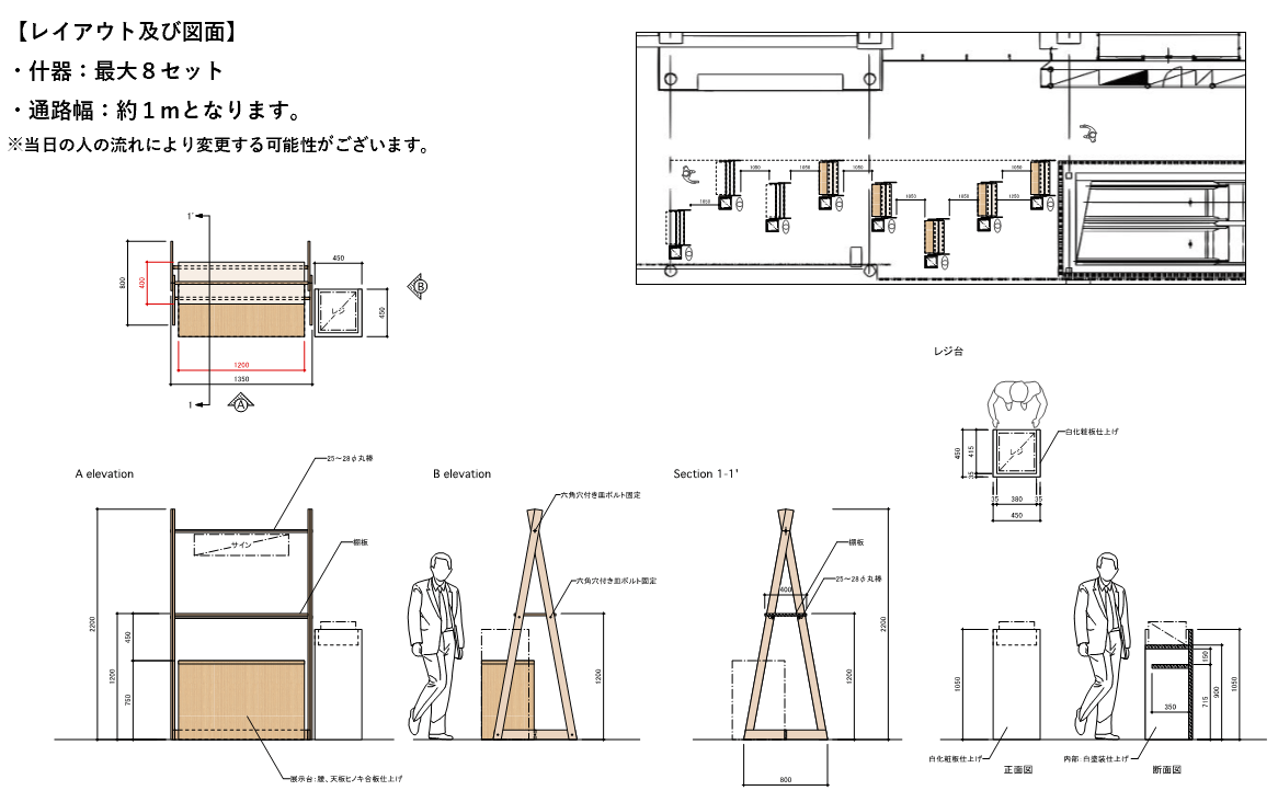 ◆ ご応募について ◆ ・出店に際しては、イベント事務局の審査が入ります。 ・各回定員に達し次第、応募を締め切らせていただきます。 ・荒天中止のイベントとなります。 ◆ 出店条件について ◆ ◇販売時間: 12:00~20:00 とします。 ただし、時期や天候によって変動する場合があります。 当日、天候不良等により途中で中止になった場合も出店料は変わりません。 ただし、台風や1日中雨等により開催が中止になる場合は開催日の前日16時までにご連絡し、出店料はいただきません。 ◇販売員: ご出店者様自身で手配をお願いいたします。 ◇設備: 主催者=什器(展示棚:W1350×D800×H2200程度、レジ台:W350×D350×H1050)は出店料の中に含まれます。 出店者=レジ、布、商品 POP 等の道具類は全てご持参ください。持ち込み什器については、貸出しブース内にて設置できる什器のみとなります。 また、電源を使用したい場合は、ご自身で電源タップ等をご持参ください。 ◇出店料のお支払方法:SHOPCOUNTERにてクレジットカードの事前払い・後払い決済(法人のみ)となります。 開催日が近くなってからのキャンセルには、以下のキャンセル料がかかります。 ※開催日 3 週間前を切ってからのキャンセル:出店料の100%の金額及び消費税相当額。 ※キャンセルポリシーにあります、30日前からではなく、3週間前からキャンセル料100%となります。 ◇売上報告とアンケート: 売上明細を記入する書面、販売に際してアンケートをお渡ししますので、必ず当日中にご提出ください。 ◆ 出店時の注意事項について ◆ ・ごみ処理について 施設内にてごみ処理が可能ですので、当日ご案内いたします。 ・商品・備品の一時預かりについて 会場近くの施設で事前/会期中のお預かりが可能です。ただし紛失や破損については施設側では一切責任が持てませんのでご了承ください。 ・車両搬入について 車両搬入のご案内は可能ですが、駐車場はございませんので最寄のコインパーキングをご利用ください。 ◆ 販売する商品(特に食品の場合)について ◆ ・食品は、食品表示法に基づいた正確な商品ラベルを添付してください。 ・商品の品質に関するヒアリング・調査について 陳列された商品について、事実関係の確認を要すると思われる点・不審な点などが見受けられた場合、主催者よりヒアリングをさせて頂くことがあります。それでも事実関係が判然としない場合は、 サンプルとして商品数点の無償提供や、当該商品販売停止をお願いする場合があります。 ・販売可能な商品について 「調理(加熱・盛付・カット・小分け・飲料を注ぐ行為等)しない食品」、アパレル・雑貨・アクセサリー・化粧品等の販売を基本と考えています。商品の内容によっては、販売をお断りする場合がありますので、予め申請及びご相談をお願いします。 ・酒類の販売について 事前に税務署にて酒類販売手続きをすれば販売可能です。お手続きは各出店者自身にてお願いします。 ・火気の使用について 物販出店でガス・火気類を用いることは禁止とさせて頂きます。 ◆ 禁止事項等 ◆ 以下の項目を尊守して頂けますよう、お願いいたします。ご協力いただけない場合は、出店をお断りする場合もございます。 ①商品・サービス情報登録外商品の販売 販売する商品に関する情報を事前に所定の書面にてご提出いただきます。これは主に、当初お伝えいただいた出店コンセプトとの著しい乖離を防ぐために行うものですので、何卒ご協力ください。 ②他の売り場での売れ残り商品の処分 スーパーで言うところの在庫一掃セールのような、不人気商品の処分という印象を与えかねないと判断されるような販売はご遠慮ください。お客様にとって価値のある、こだわりの品を販売する出店者によって構成される売り場を目指しているためです。 ③産地や期限の不当表示の禁止 不正競争防止法、食品衛生法、消費者契約法などに違反する可能性がございますので、ご遠慮ください。また、故意ではない場合にも法律違反となる場合がございますので、産地や消費期限等については正確にご確認をお願いいたします。 ④大声を出しての販売 常識の範囲内での声出しは問題ございませんが、大声を出しての販売は他の出店者のみなさんに迷惑がかかるほか、当イベントの趣旨に反しますのでご遠慮ください。 ⑤他社ブース前での販売 原則として、割り当てられた場所内での販売を行って下さい。他出店者ブースの商品を検討中のお客様に横から声をかける、いわゆる割り込み販売は出店者間での諍いの原因になりますのでお止めください。 ⑥POP・看板での過大表現 商品の効果効能を謳う上で薬事法に抵触する表現。また、根拠の無い表示(「無農薬」「有機栽培」等)等はお避け下さい。 ⑦他社の商品に関する中傷・悪口 自身の商品を売らんがために、他出店者の商品を誹謗中傷する行為は厳に慎んでください。 ⑧出店者同士での取引商品を、弊社イベント内で共に販売すること 出店者 A の商品