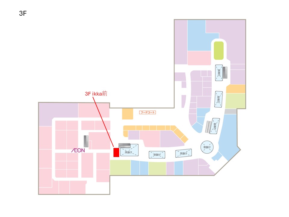 イオン船橋店3階フロア、フードコートに近いスペースです。 ・小スペース(W4,800mm×H2,700mm) ・電源あり 100V×1口×1箇所(周辺回路 合計1,500Wまで)
