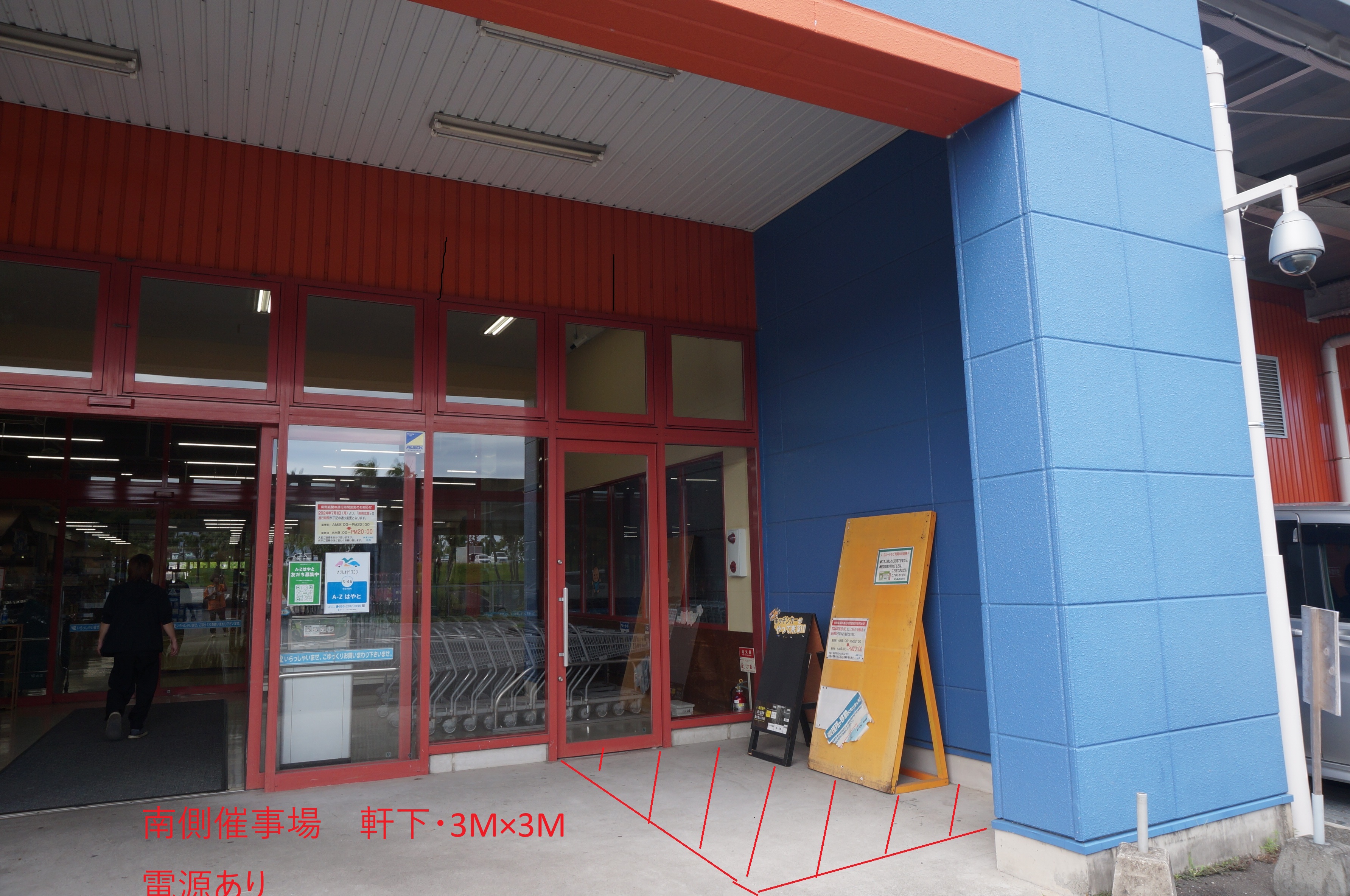 ※本ページはプロモーション催事(非物販)のみ受付しております AZはやと店は、鹿児島県霧島市隼人町の国道10号線沿いに位置し、車でのアクセスがしやすい郊外型の大型店舗です。 24時間営業・年中無休の利便性から、地域の生活インフラとしての役割を果たしています。 食品や日用品はもちろん、家電、カー用品、農業資材、衣料品、ペット用品まで取りそろえており、なんでも揃うスーパーとして知られています。 客層は幅広く、近隣に住む高齢者やファミリー層を中心に、時間を問わず利用されています。 視認性の高い南玄関脇のスペースをご利用いただけます。 是非お問い合わせください。 【NG商材】 保険、リフォーム、冠婚葬祭、不動産、買取、浄水器