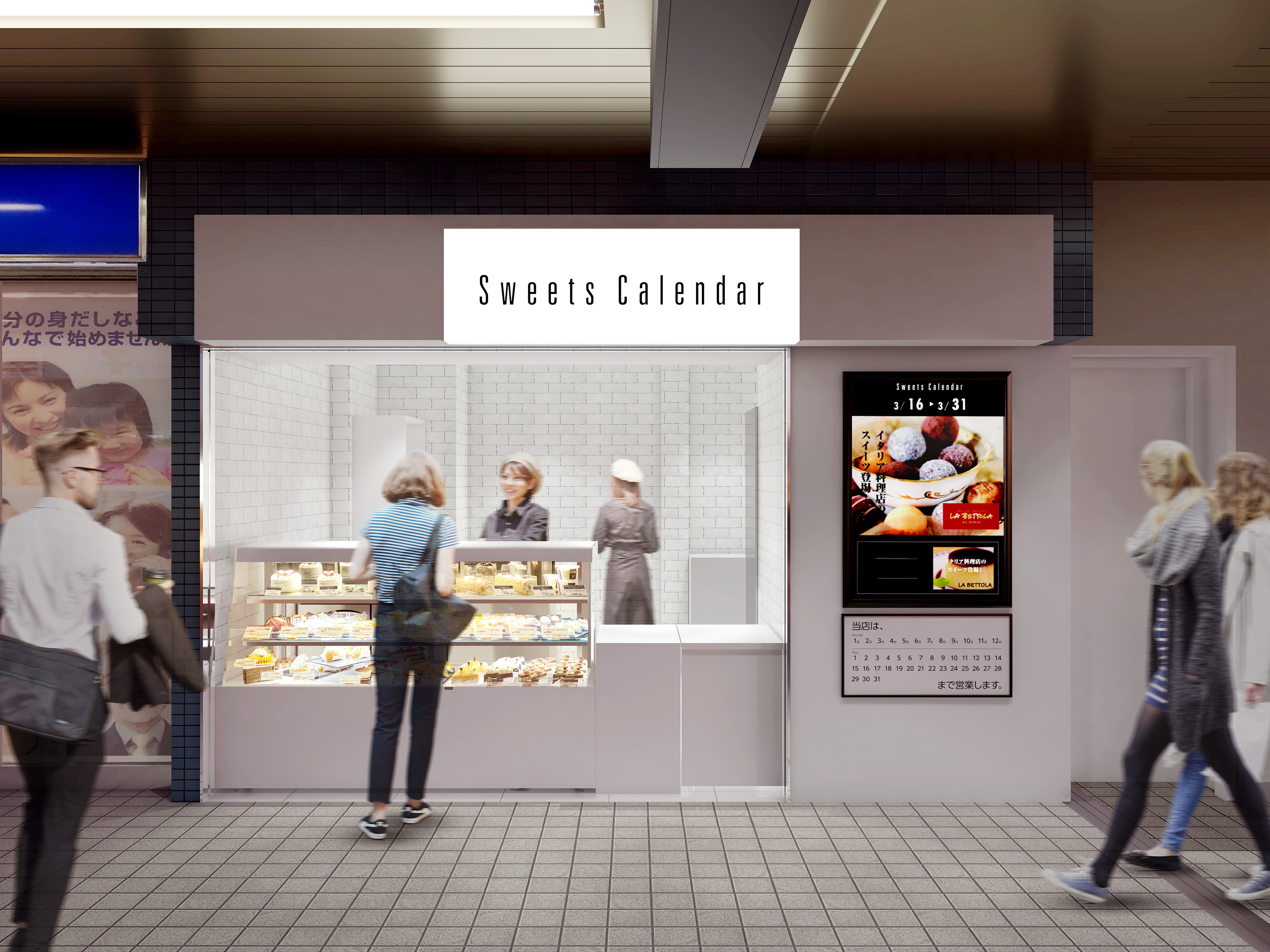 改札外の通行導線にある店舗です。通勤通学の需要のほか、駅周辺にマンションも増えたことで自家需要も高まっています。 Officeも多く、お日持ちのする焼菓子など贈答用の箱ものも人気の店舗です。