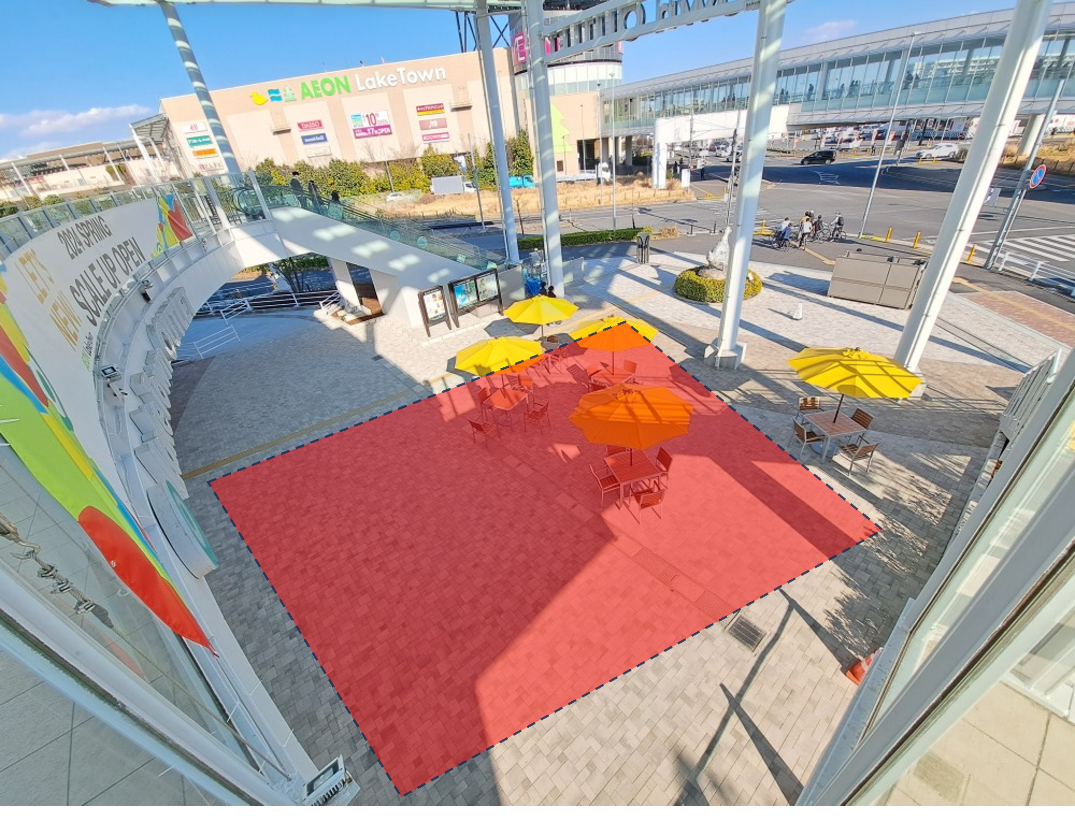 レイクタウンアウトレット正面スペースです。 レイクタウンkaze/moriをつなぐセンターブリッジからも良く見える場所となっております。 さまざまなイベントを実施可能です。
