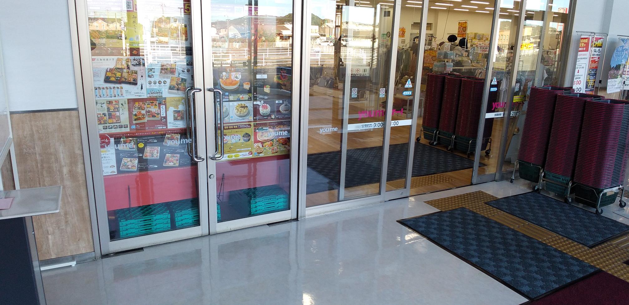 ゆめマート川棚の風除室の催事イベントスペースです。ゆめマート川棚はデイリーユースの地元のお客様が年間を通して多く訪れる地域密着型の店舗です。当スペースは風除室のスペースで、多くの人の目に留まりやすい立地となっております。物販・販促プロモーション等、様々な用途にご利用いただけます。ご希望日程をご指定のうえ、お問い合わせフォームよりお気軽にお問い合わせください。 【NG商材】パン系、電子タバコ