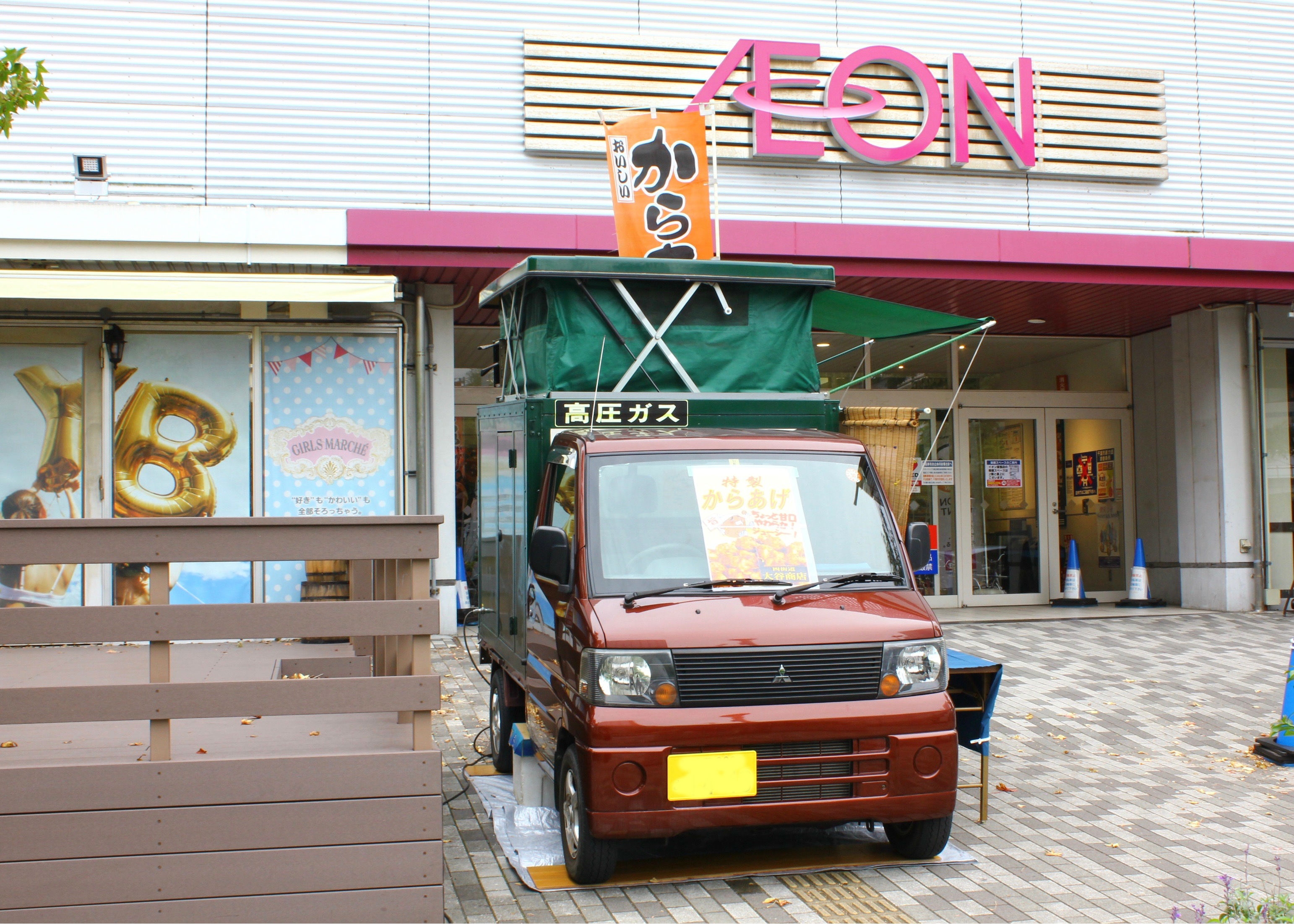 京浜幕張駅から徒歩5分、イオン幕張店ウッドデッキ前に位置するイベントスペース。ここで毎週月曜、火曜、水曜日に【幕張GYOSHO】というキッチンカー出店イベントを開催しています。キッチンカースペースは大通りに面し、周辺にはオフィスビルや住宅がある為ランチタイムは多くの人で賑わっています。そんな近隣の方々に、あなたの自慢のフードを提供してみませんか? JR京葉線京浜幕張駅から徒歩5分に位置するイオン幕張店のウッドデッキ前イベントスペースです。ランチ時には周辺のオフィスワーカー、近隣住民の方々が多く通られるロケーションです。キッチンカーを停めることが出来るスペースですので、その場で調理した出来立てのフードをお客様へ提供することが可能です。 【利用料金(税抜)】 キッチンカー1台につき 5,000円/日 ※最短利用時間は11:30〜14:00までの2時間半になります。 ※月曜、火曜、水曜のみの貸出しとなります。 【利用時間】 11:30〜17:00 ※準備の時間がある為、10:20に現地入りをお願い致します。 【その他】 ・SHOPCOUNTERよりお申込みをお願いいたします。電話での受付は行っておりませんので、施設への直接のご連絡はお控えください。