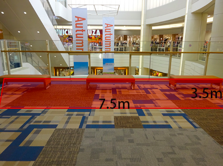 1Fさざんかコート上の吹き抜けになります。 ・電源あり(100V) ・最大使用電力(1000W) ※GW・お盆・年末年始期間に関しては土日祝料金とさせていただきます。