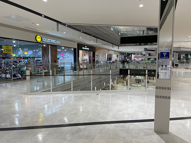 フードコートや大型店舗、雑貨店舗も近く、お客さまが往来する場所です。 【イベント実施例】企業PR催事(通信、ミネラルウォーター等)