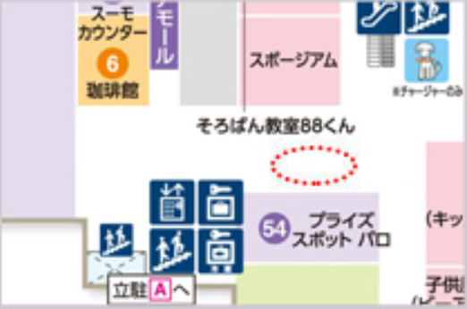 イオンシネマのエントランス、クリニック・カルチャースクールに近く、イオン直営売場(キッズ・メンズエリア)にも面しているためファミリー層へのプロモーションがしやすい場所となります。