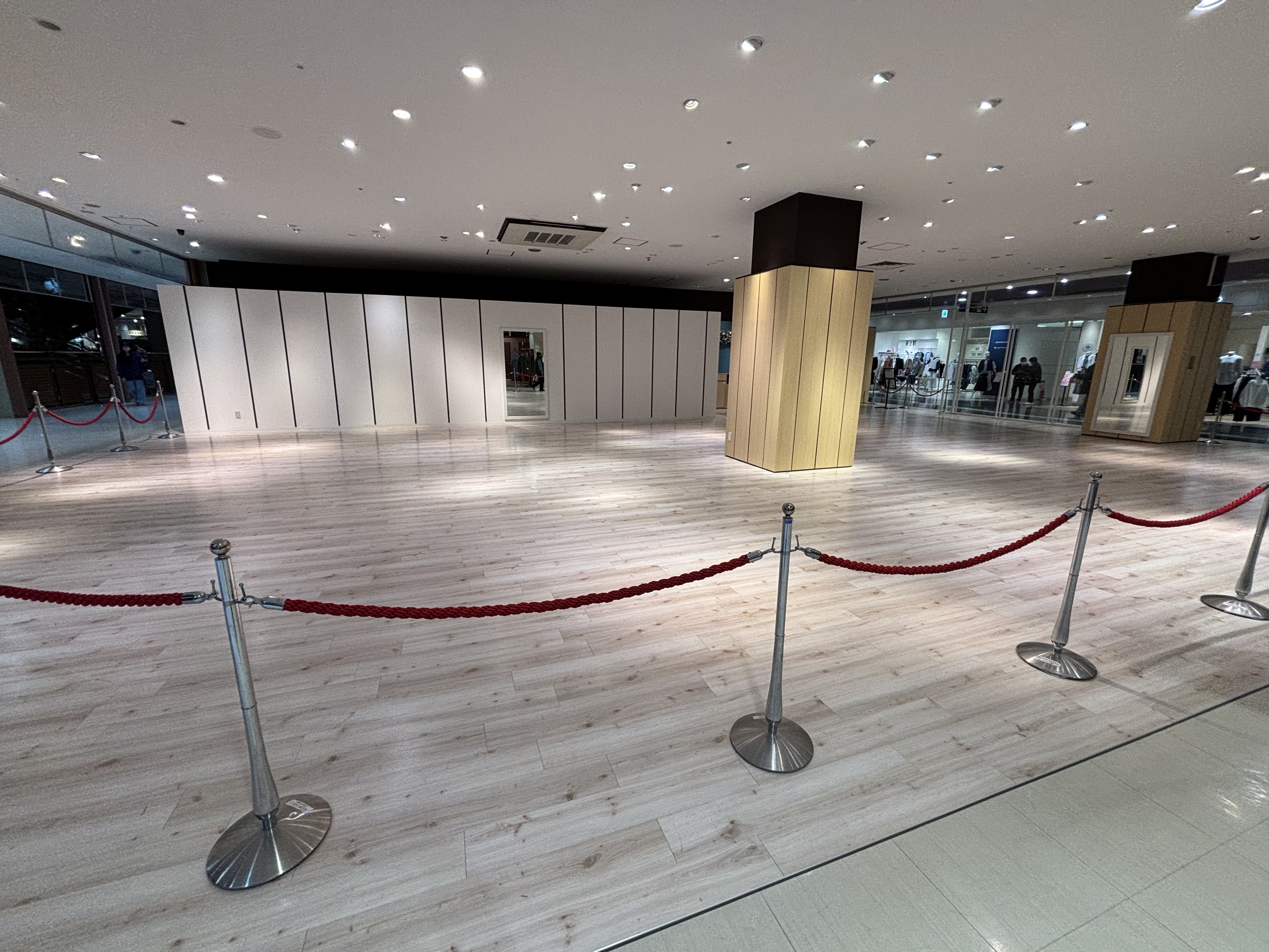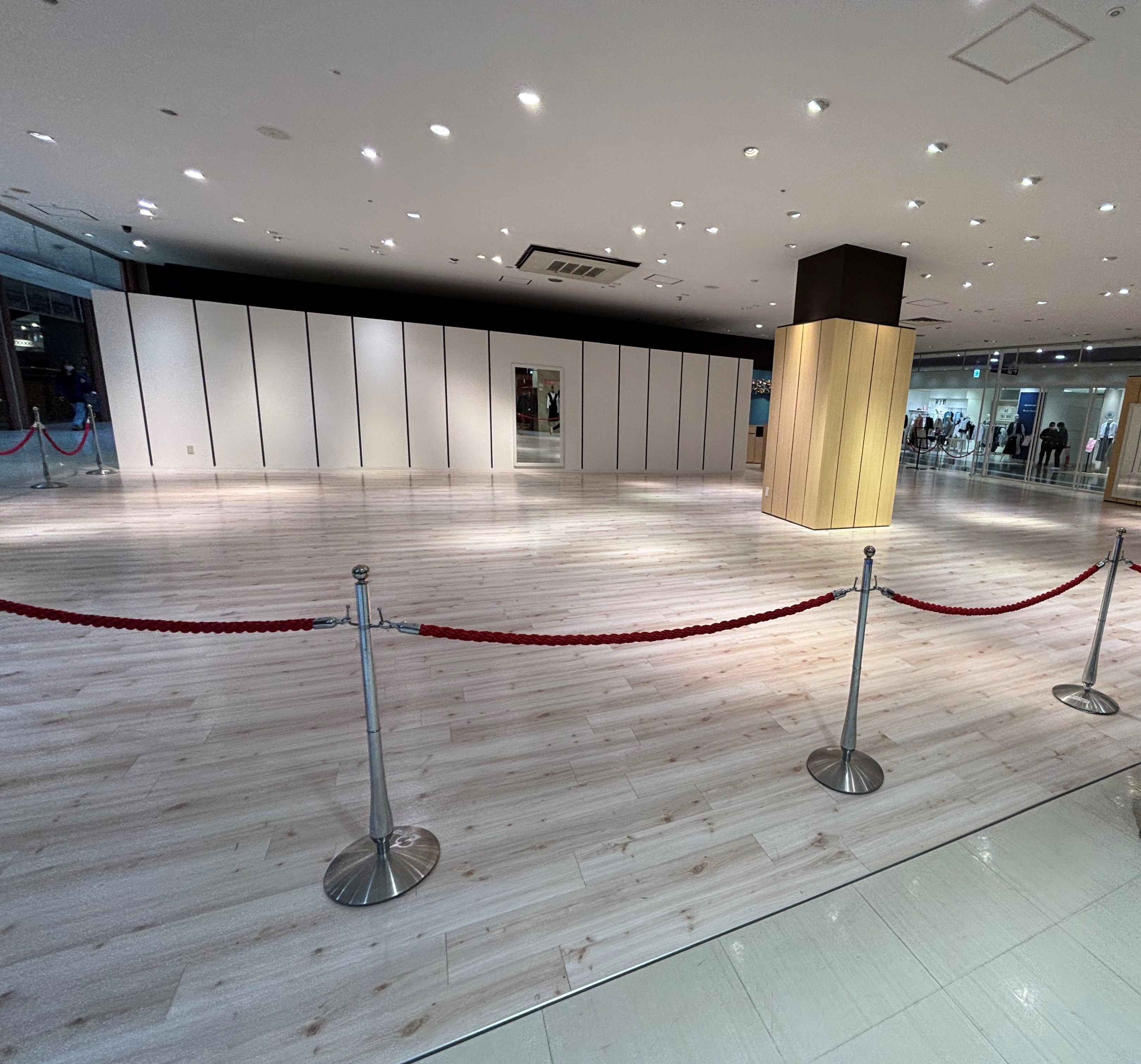 衣料品業種が営業していた区画になるのでフィッティングルームや柱付き鏡の設備がございます。アパレルなどの物販催事におすすめです。