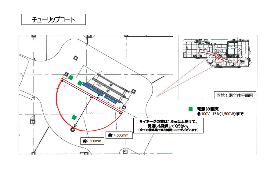 | 利用用途 | ポップアップストア 食品販売 販促イベント 展示会・個展 キッチンカー・移動販売 写真・動画撮影 募金・NPO活動 音楽ライブ・演劇 ワークショップ・勉強会 パーティー・懇親会 その他 |