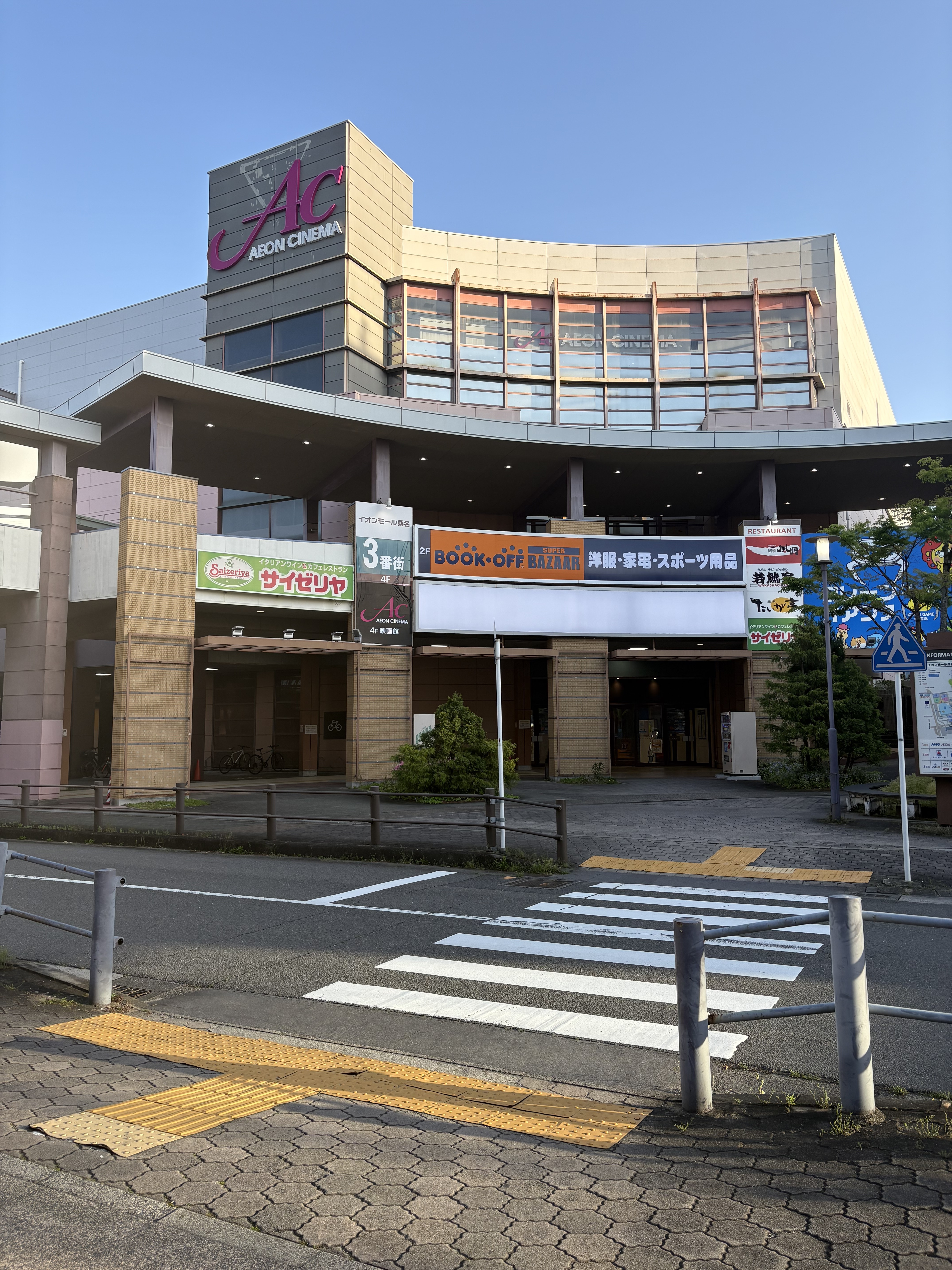 詳しくはホームページをご確認ください。 https://www.aeon.jp/sc/kuwana/access/ ■電車 近鉄名古屋線・JR関西本線 桑名駅下車 その後三交バスへお乗り換え ■バス 桑名駅からの場合 イオンモール桑名経由 大山団地行き イオンモール桑名経由 桑名ネオポリス行き 「イオンモール桑名」もしくは「イオンモール桑名口」バス停下車/所要時間約15分 名古屋・名鉄バスセンターから ・大山田団地行き ・西桑名ネオポリス行き ・希望ヶ丘行き ・赤尾台・正和台行き 「イオンモール桑名口」バス停下車/所要時間約30分 名古屋 オアシス21・名古屋市栄バスターミナルから ・大山田団地行き ・西桑名ネオポリス行き 「イオンモール桑名口」バス亭下車/所要時間約35分 ■車 【名古屋方面からお越しの場合】 東名阪自動車道経由、桑名東I.C.を降りて信号を右折 >国道258号線に入り、約2.4km先大山田方面へ 【四日市方面からお越しの場合】 東名阪自動車道経由、桑名I.C.を降りて桑名市街方面 >約1.6km先を大垣方面へ左折 【知多・三河方面からお越しの場合】 伊勢湾岸自動車道経由、湾岸桑名I.C.を降りて国道258号線を大垣方面へ