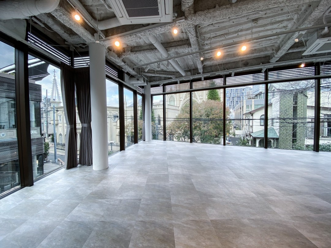 たくさんの自然光が差し込む、上品でやわらかい雰囲気のスペースです。本スペースは2Fにございますが、通路側はガラス張りになっておりますので、外にPRすることが出来ます。観光客もたくさん足を運ぶエリアですので、プロモーションイベントやポップアップストア、展示会に最適なスペースです。 表参道駅から徒歩3分の場所にあるスペースです。夜間に見ることのできる青山セントグレース大聖堂の夜景も抜群です。音響設備、Wifi等、会場内の設備はすべて無料で、自由にご利用ください。また、別途1F部分の貸出しも可能です。詳細は、下記【関連ページ】よりご確認ください。 【利用金額(税込)】 170,000円/日 ※1日貸しの利用可能時間は、9:00〜20:00となります。 *時間貸し* 18,000円/時 ※5時間からご利用可能です。 【利用時間】 9:00〜20:00 ※7:00〜24:00の時間にて延長利用可能です。(17,000円/時) 【関連ページ】 https://shopcounter.jp/spaces/0zSJSk https://shopcounter.jp/spaces/8o8mOR https://shopcounter.jp/spaces/OkwOJZ