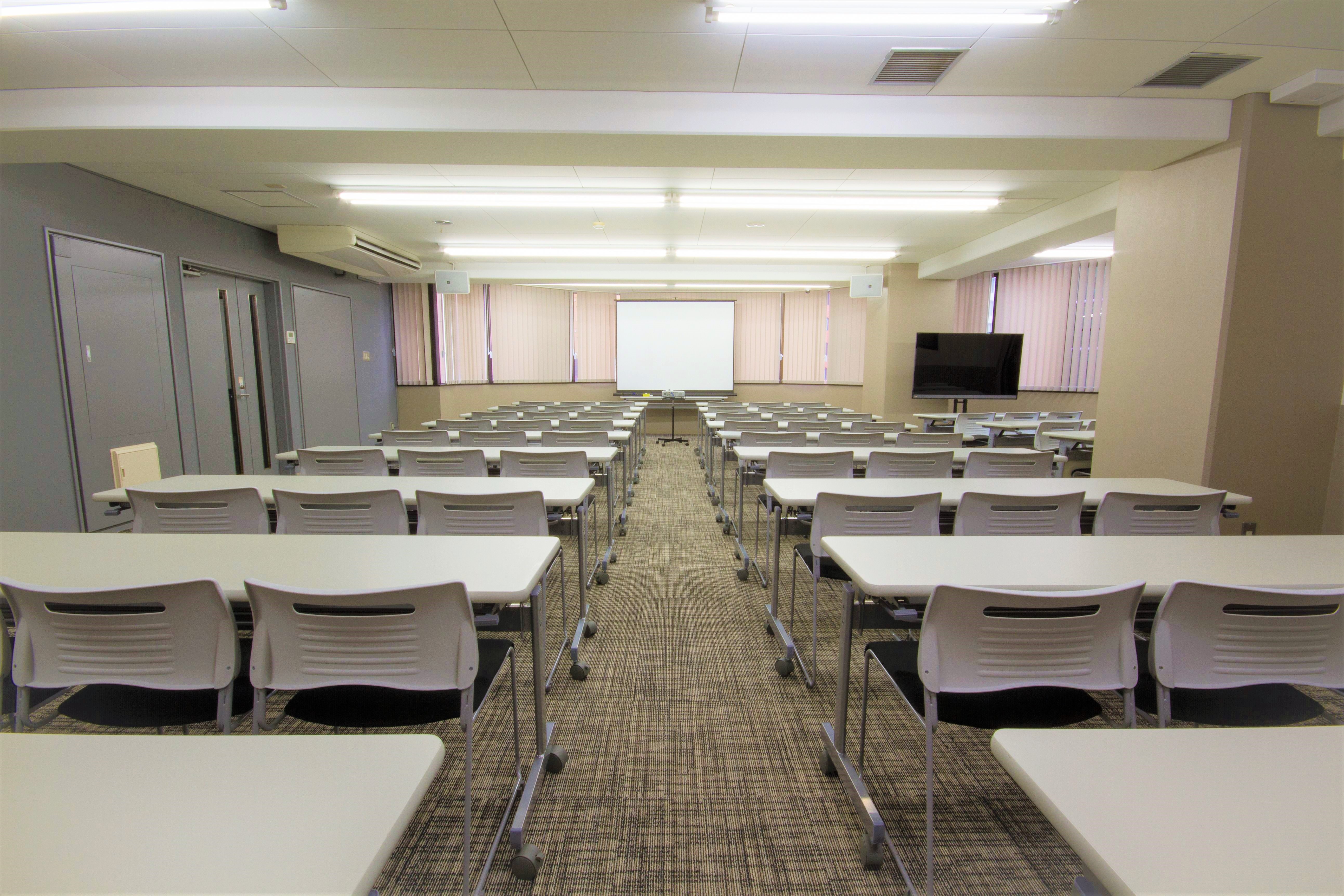 馬喰町駅徒歩3分の好立地に位置する駅近で便利なセミナー会場・貸し会議室です。70名着席、最大定員80名収容可能です。マイクやプロジェクター等、講義や説明会に必須の設備も充実しております。レイアウト変更や追加での椅子のご用意も承っており、様々な会場ニーズに対応可能でございます。まずはお気軽にご相談ください。 馬喰町駅徒歩3分の好立地に位置する駅近で便利なセミナー会場・貸し会議室です。マイクやプロジェクター等、講義や説明会に必須の設備も充実しております。レイアウト変更や追加での椅子のご用意も承っており、様々な会場ニーズに対応可能でございます。まずはお気軽にご相談ください。 【利用時間】 平日 9:30~23:00 土日祝日 9:30~22:00 【利用料金(税込)】 平日 190,973円/日 土日祝日 175,695円/日 *時間貸し* 15,277円/時 ※2時間以上からの貸出となります。 【主な設備】 収容可能人数 ~80名(70名着席可) マイクやプロジェクター等、講義や説明会に必須の設備も充実しております。詳細は内覧時にご確認ください。