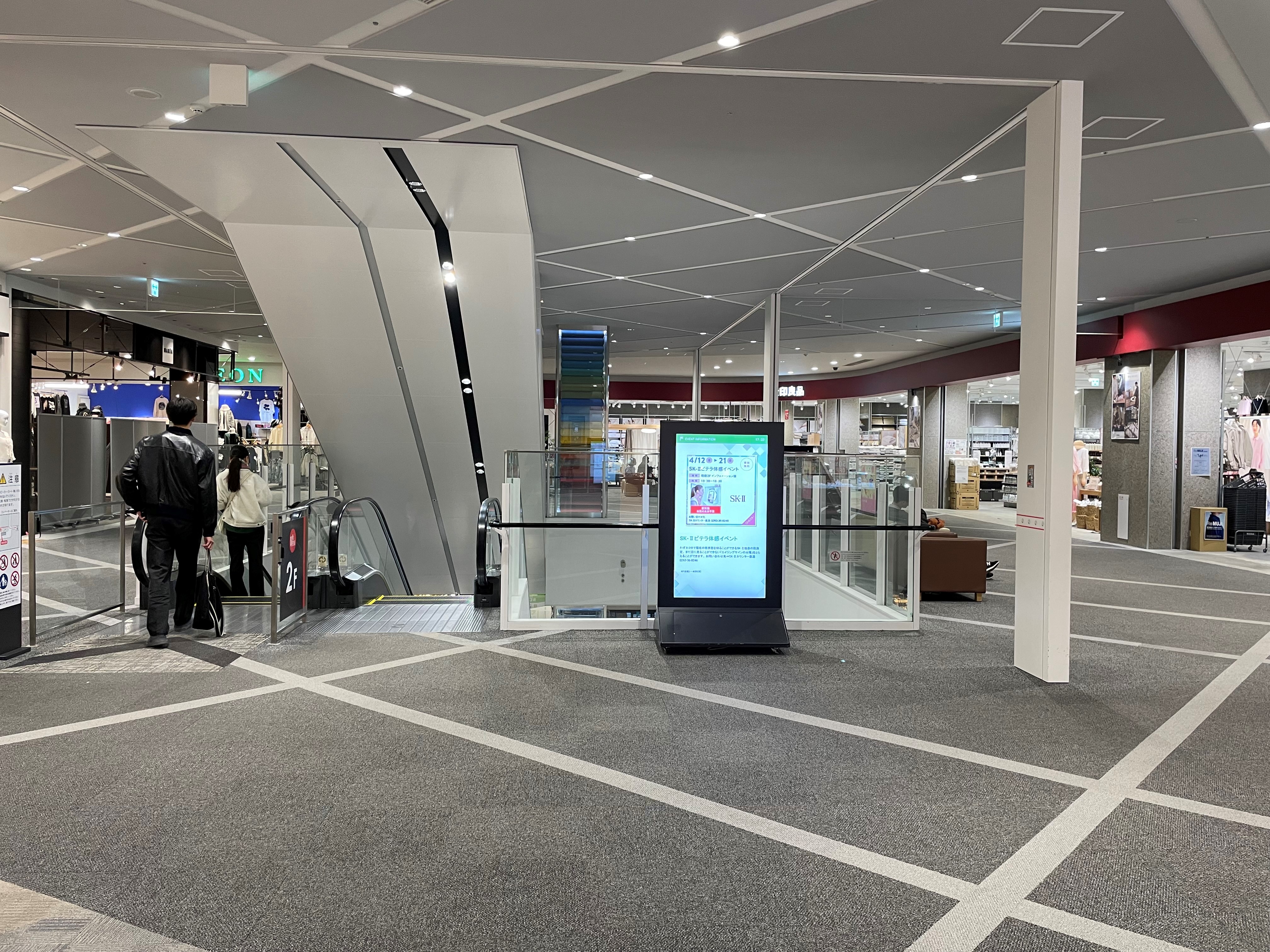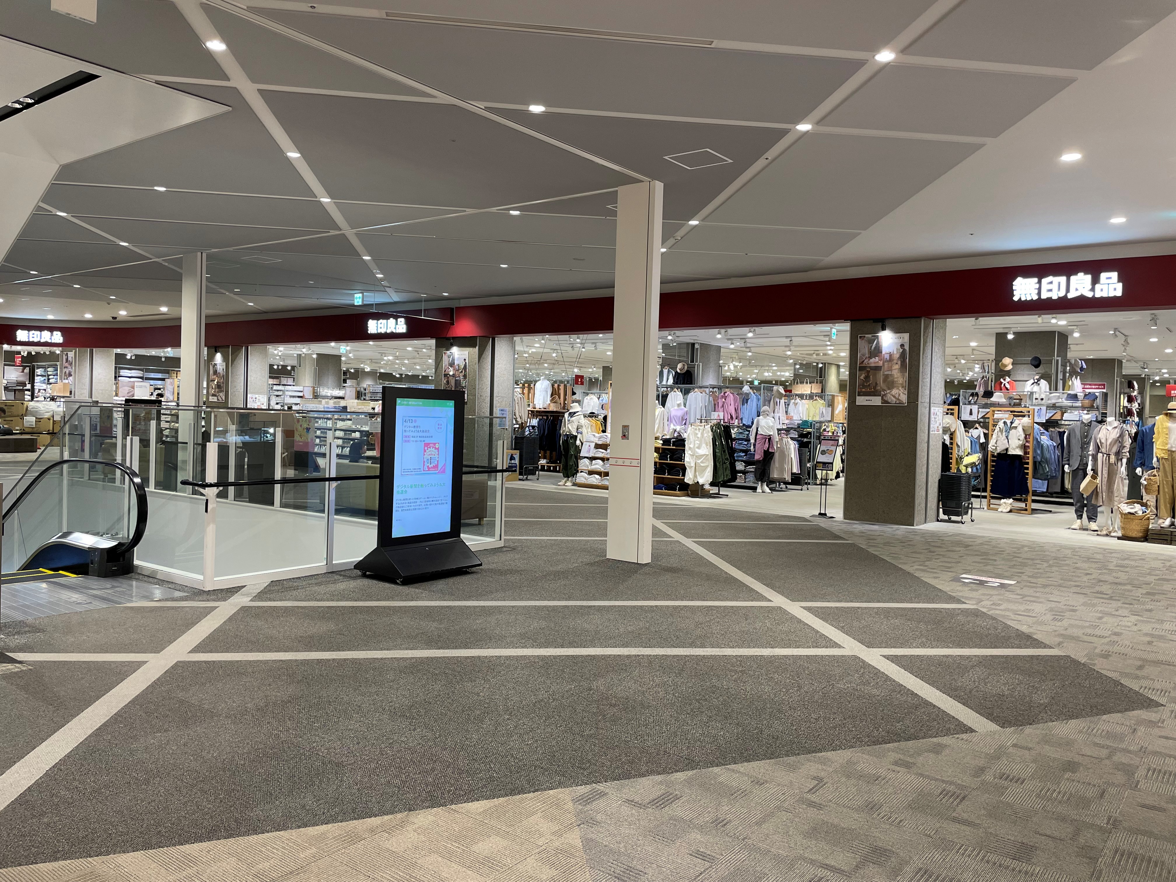 小スペースですが集客のある無印良品の前で、幅広い世代の導線が強い場所となります。 サンプリングやワークショップなど開催可能です。 ※シャッターライン(実線)上は設置不可となります。 面積 2.5坪(8.3m²) 使用料 【平日】50,000円(税抜)/日 【土日祝】80,000円(税抜)/日 特徴 ・小スペース ・電源あり(100V) ・最大使用電力(1500W)