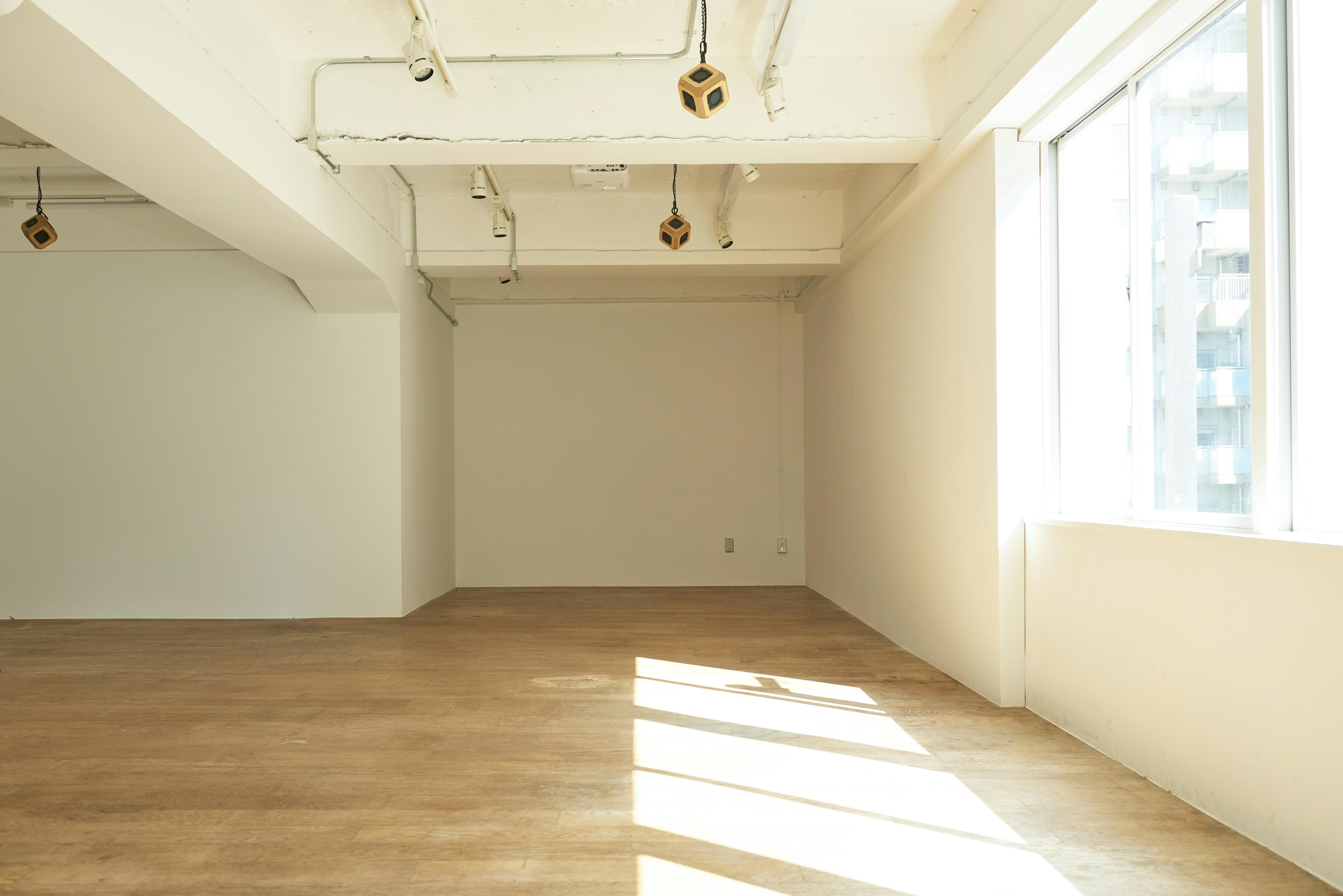 【1周年記念:ハンガーラック16台貸し出し無料】ギャラリーやアパレル展示会に適した白壁、フローリング53㎡のスペース(3F)