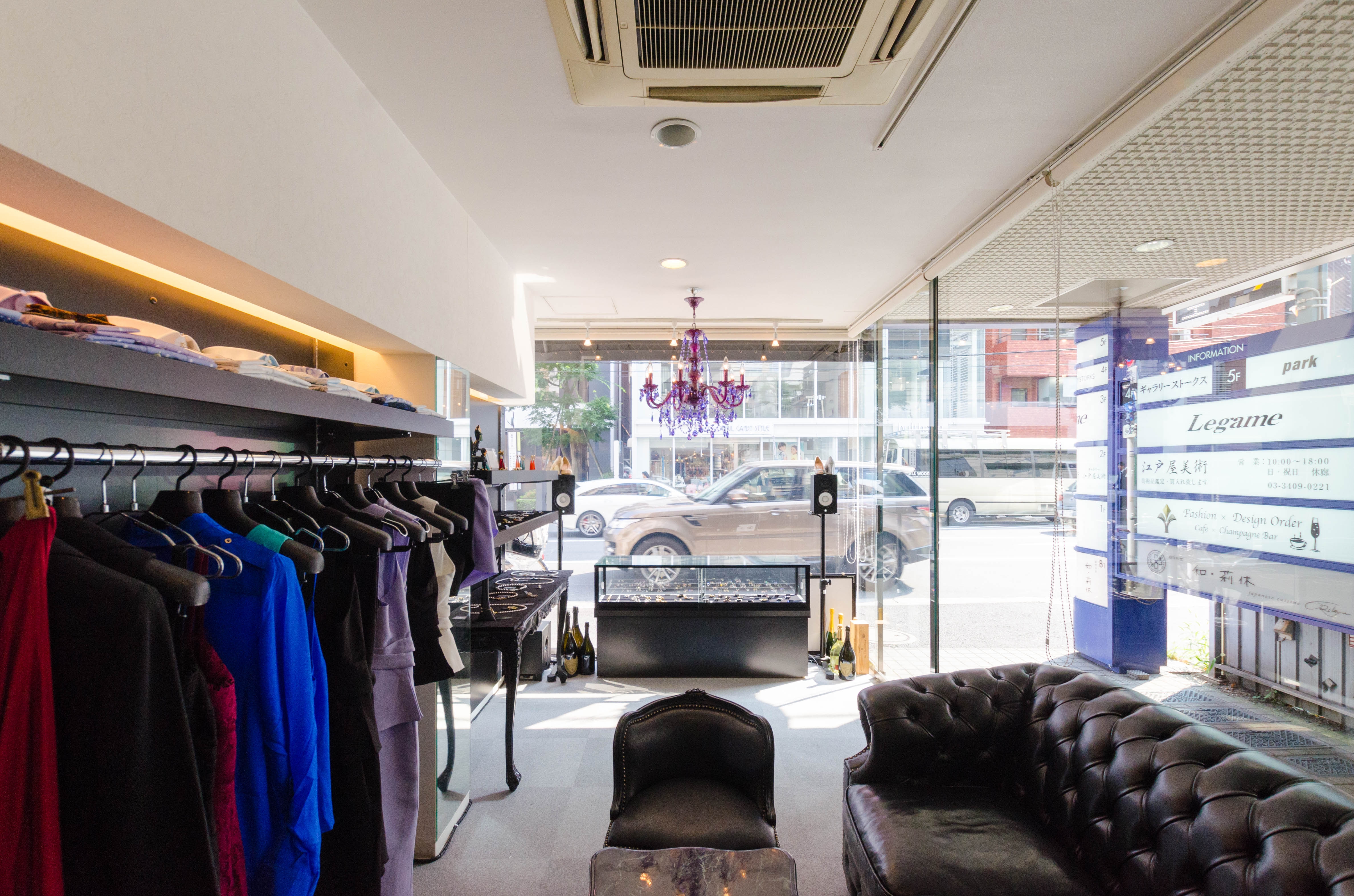 表参道駅から7分ほど、クラッシックモダンなブラック家具のスタイリッシュなショップスペースです。 表参道・青山の幅広い世代の感度の高いお客様が行き交う場所でポップアップストアやイベントを開催してみませんか? 表参道駅から7分ほど、青山の雰囲気に合うような黒を基調とした店内のショップスペースです。 表参道・青山の大通りにあるため、幅広い世代の感度の高いお客様が行き交う場所になります。 通りに面してガラス張りのショップになっており、通行客の目を引く立地です。 店内は黒を基調とした家具が揃っていて、シックな雰囲気です。 店内のハンガーラックや展示棚がご利用いただけるため、アパレルブランドやアクセサリーブランドのポップアップストアに適したスペースになります。 また、ワインクーラーが設備としてございますため、アルコールを伴うイベントも相談可能です。 また、1日単位だけでなく時間単位での貸出も可能です。 利用料金目安:¥8,000/時間〜(最低利用時間:3時間) イベント等に幅広くご利用できるスペースとなっております! まずはご自身のアイデアをお気軽にご相談くださいませ。
