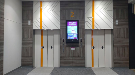 エレベーターメディアは他層階や駐車場を利用されるお客さまが待ち時間の際に 注目される媒体です。お客さまが立ち止まって見る媒体として高い視認率が 期待できます。告知面サイズも大きい為、迫力のある展開が可能です。 エンターテイメントコートのイベントスペース、柱広告等を 同時開催することでその効果をより高めることが可能です。 【基数】 1階/6基 2階/6基 3階/6基 【掲出料金】 2週間掲載/1基あたり 70,000円(税抜) 現地調査時にご確認ください。 塩ビシート(再剥離) ※マットラミネート加工・糊加工 ※制作費、施工費は別途費用がかかります。