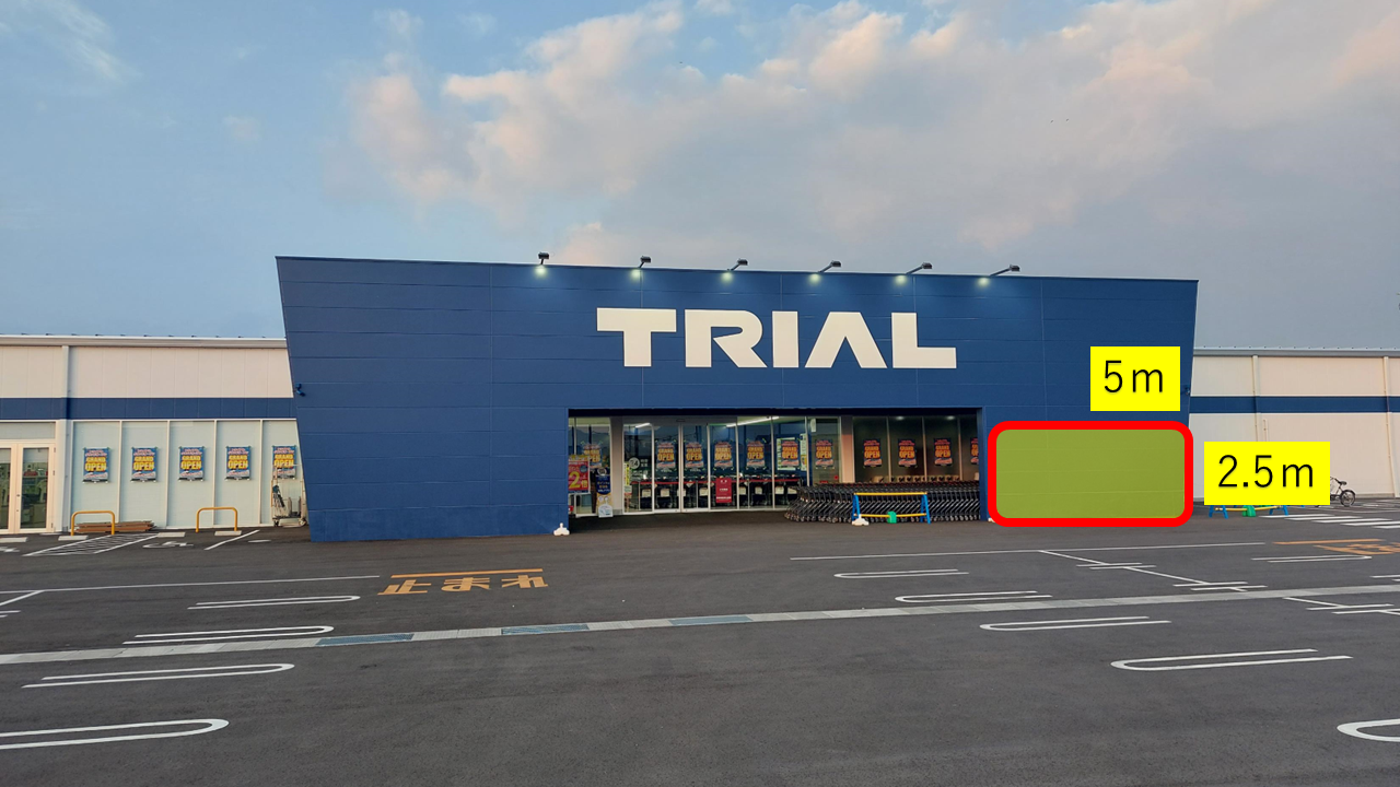 「トライアル三木店」キッチンカーやテントでの出店可能なスペースです。 地域の方の来店頻度の高い施設で、キッチンカー・テントを使っての食物販実施が可能です。 主婦やファミリー層を中心に幅広い年代へのアプローチが可能です