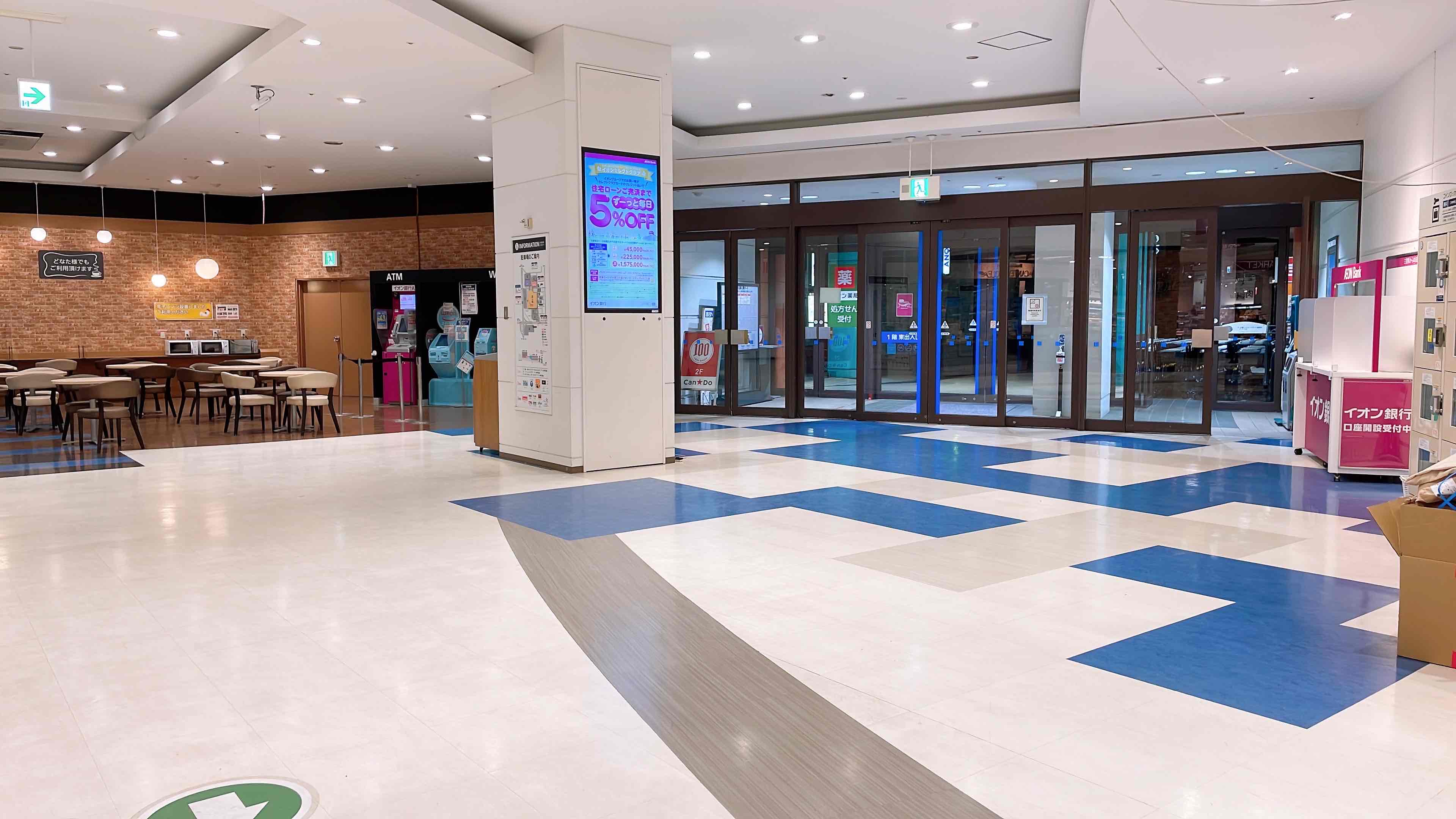 イオン食品売り場への出入口のため一定の人通りが確保されます。PRや食物販におすすめです。(火曜市や20日30日のお客さま感謝デーは特におすすめです)