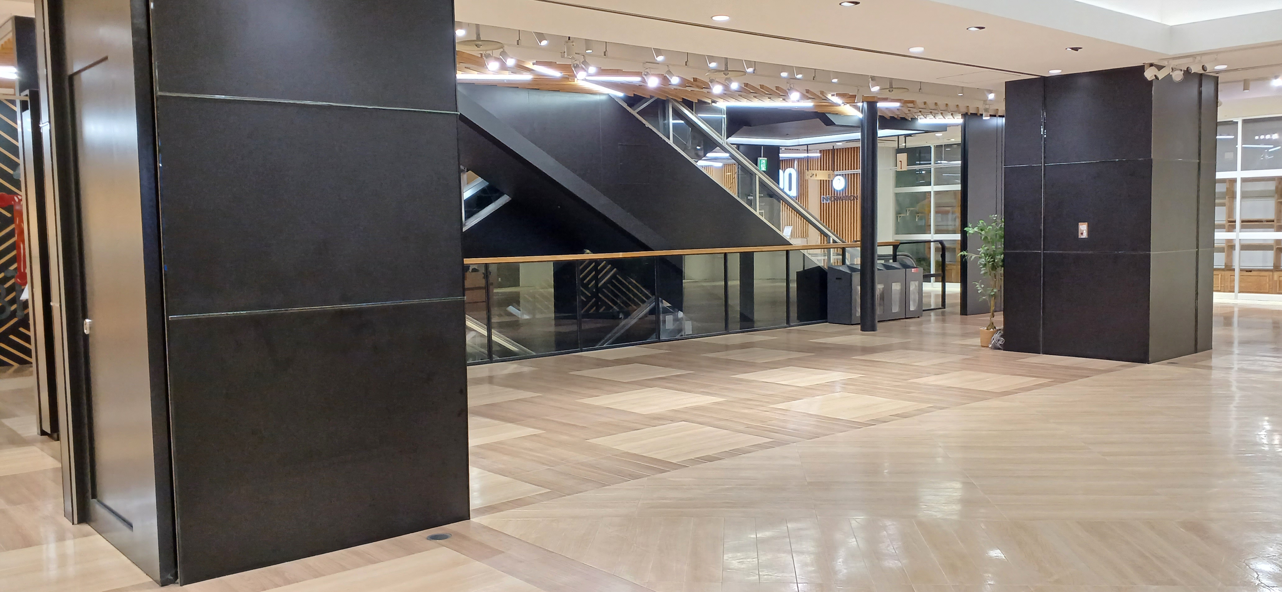 ・通常時はお客さまのレストスペースとして運用 ・1Fエスカレータ脇エスカレータ昇降時に視認性あり