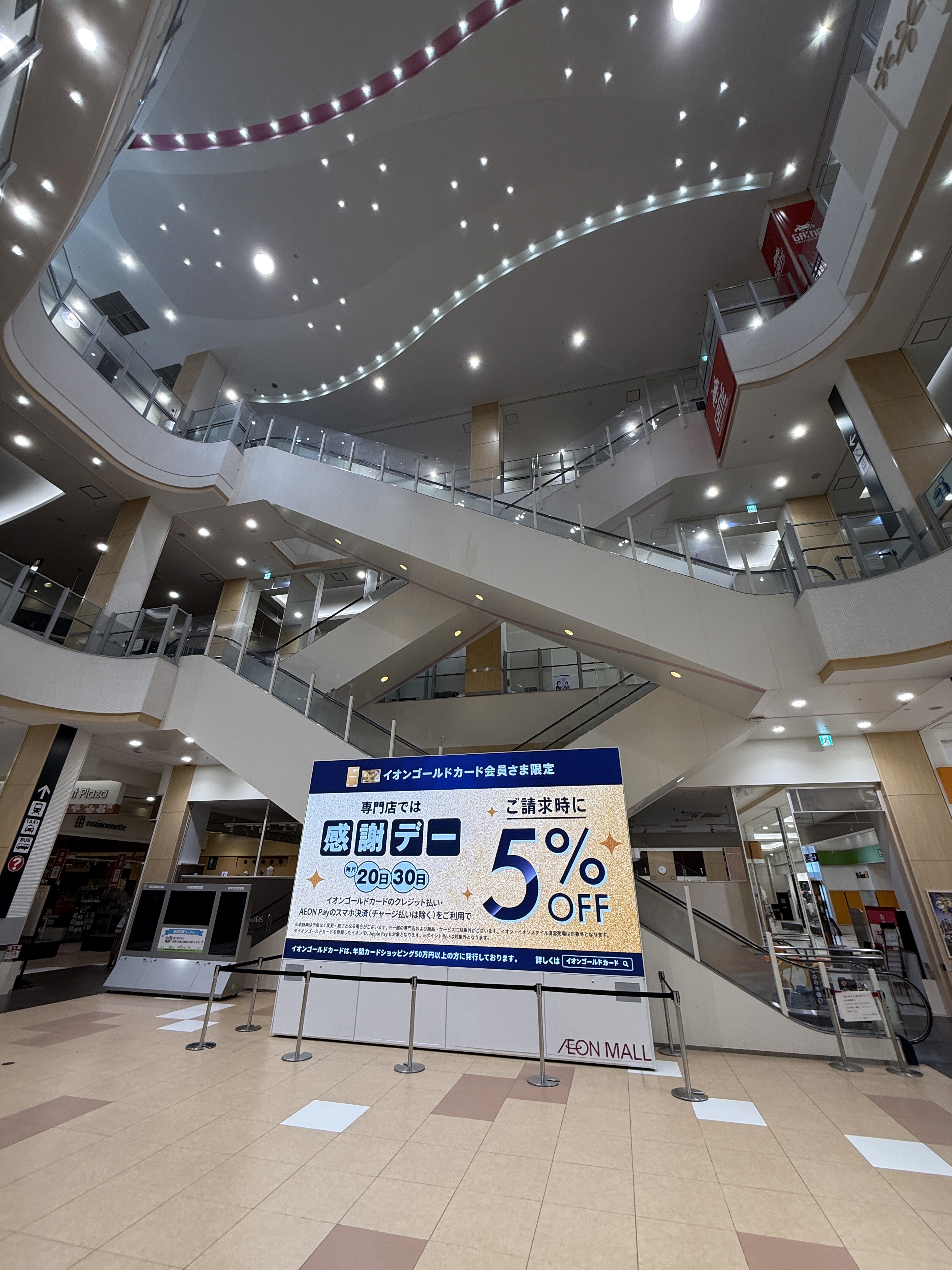 イベントスペースのご利用は、使用目的や企画内容による審査がございます。 事前に弊社担当者と打ち合わせ、審査に必要な資料等のご提出を必須としております。 内容および審査の結果によってイベントスペースのご利用をお断りする場合もございますので、予めご了承ください。 下記の使用目的・内容でのイベントスペースの使用は禁止といたします。 ・法律に違反するもの ・公序良俗に反する、またはわいせつなもの ・他人の信用または名誉・プライバシーを侵害するもの ・国内外の国家・民族等の尊厳を傷つける恐れのあるもの ・商標・著作権等を無断で使用するもの ・政治的または宗教的勧誘のあるもの ・当社の運営・利用を妨げるもの ・火気を使用するもの また、次の場合は使用許可を取り消す場合がございます。 ・使用目的・内容が禁止されているものに該当する場合 ・使用目的・内容等の変更に関して事前にお申し出のない場合 ・使用規定に違反のあった場合 ・使用上危険が予想されるとみなした場合 ・偽りの申請、その他不正手段により使用許可を受けた事実が明らかになった場合 ・使用の権利を譲渡、転貸した場合 ・その他管理上、支障または不適当と認められた場合 ・イベントスペースの使用目的に反した場合 上記がイベントスペースの使用中に発覚した場合、イベント等の実施中であっても即中断、退店いただき、今後一切の開催をお断りする場合がございますのでご了承ください。 なお、使用許可の取消、使用中止に伴う損害等についてイオンモール株式会社は一切の責任を負いません。 掲載しております賃料、諸条件につきましては一例です。イベントスペースは現況優先となります。 詳細は弊社担当者との打ち合わせ時にご確認ください。 本施設での出店・広告出稿にかかわる契約はイオンリテール株式会社と締結いただきます。