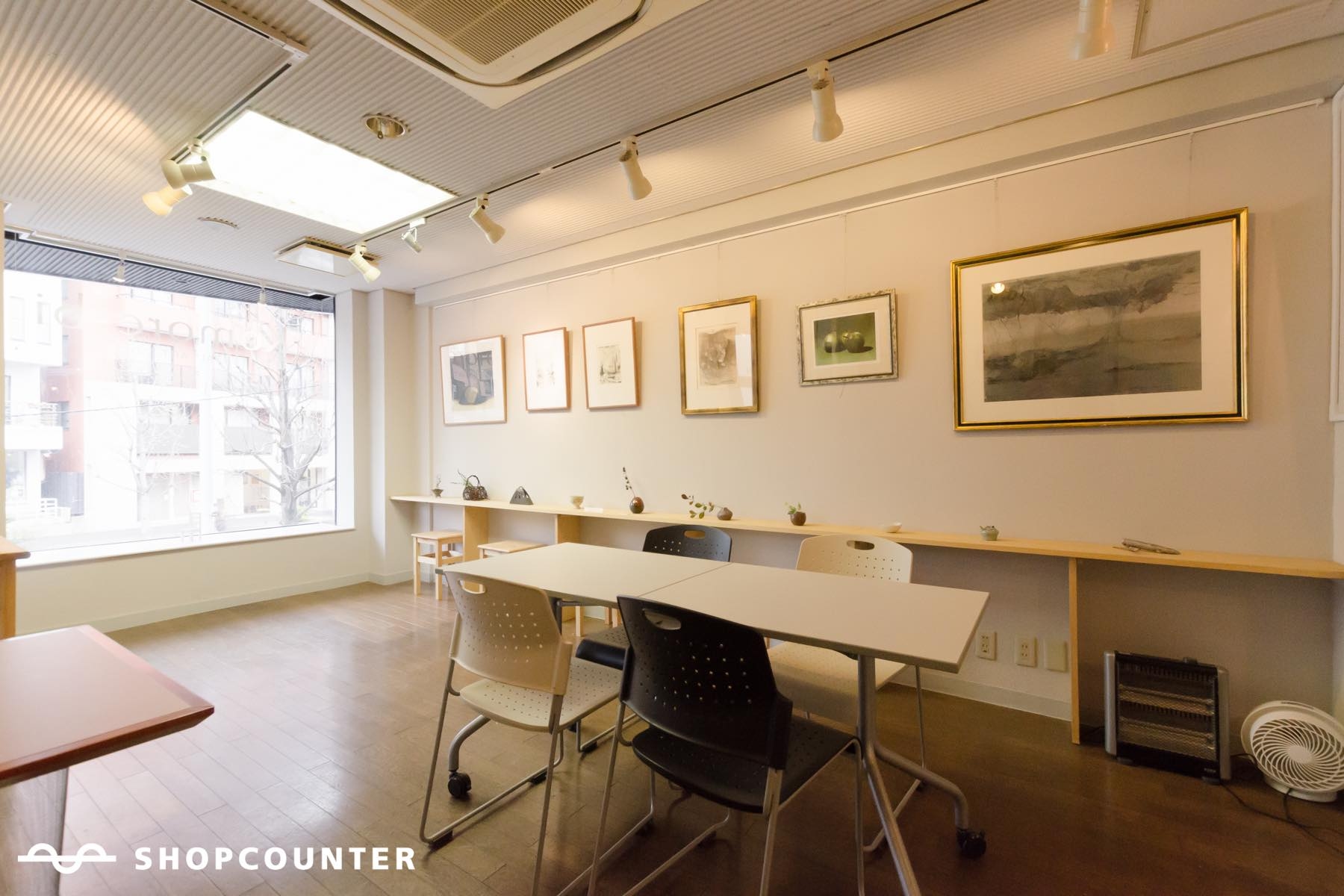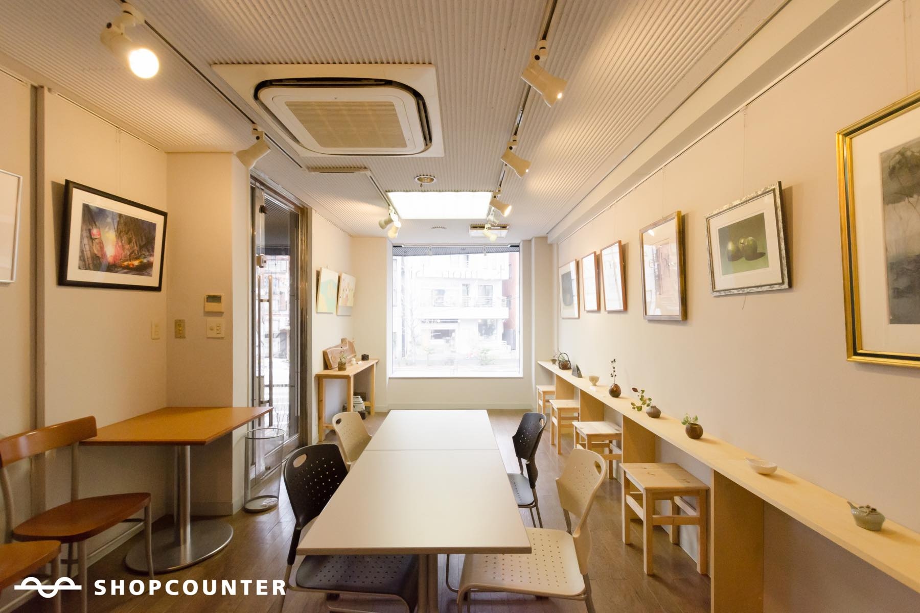 代々木上原駅より徒歩3分、四角い大きな出窓が特徴のギャラリー兼多目的スペース。23㎡の広さに大きな出窓、少し小上がりのフロアーが心地よい時間を運んでくれます。柔らかい色味の木材素材のインテリアもあり、展示会や対談用スペース、セミナーなどにもおすすめです。程よい広さのスペースで、少人数のワークショップや手作り雑貨などのポップアップショップを開催してみませんか? 新宿から10分程度、小田急線と千代田線が乗り入れる代々木上原駅から徒歩約3分ほどの井之頭通り沿いにあります。 小粋な雑貨店や飲食店が隠れ家的に点在しています。足を延ばせば原宿や渋谷にお散歩でアクセス可能! ハイセンスな大人の街、代々木上原。その路地から少し上がった、四角い大きな出窓が特徴のギャラリー兼多目的スペースです。 程よい清潔感、程よい落ち着き、程よい広さ、出窓から見える井之頭通りの景色が訪れた方にとても心地の良い時間を運んでくれます。 これまで、カーイラスト企画展や雑誌社対談用スペース、楽器リハーサル、美容セミナー、ミーティングなどの利用実績あり。 1日から月単位まで期間は自由にご設定いただき、長期になるほど割引率が高くなります。 壁沿いに備え付けの棚があり、机、椅子など無料でご利用いただけます。無線LANも大丈夫です。 お気軽にお問い合わせください。 *利用時間* ・10:00〜19:00 ※利用時間は、基本営業時間内の9時間にてお願いしております。 ※開始時間の前倒しについて、ご相談ください。 *利用料金* 《1日貸し》 ・20,000円/日 《時間外料金》 ・2,000円/h ※時間外料金:搬入・搬出時のみ時間外利用可能 ※平日・休日ともに同じ料金です。 *飲食について* ・自由にご利用可能です。 (事前にご相談ください。) *搬出・搬出について* ・駐車スペースはありませんが、搬出搬入程度の短時間であれば店舗前の駐車は可能です。 (店舗前に駐車する場合は、事前にご連絡ください。)