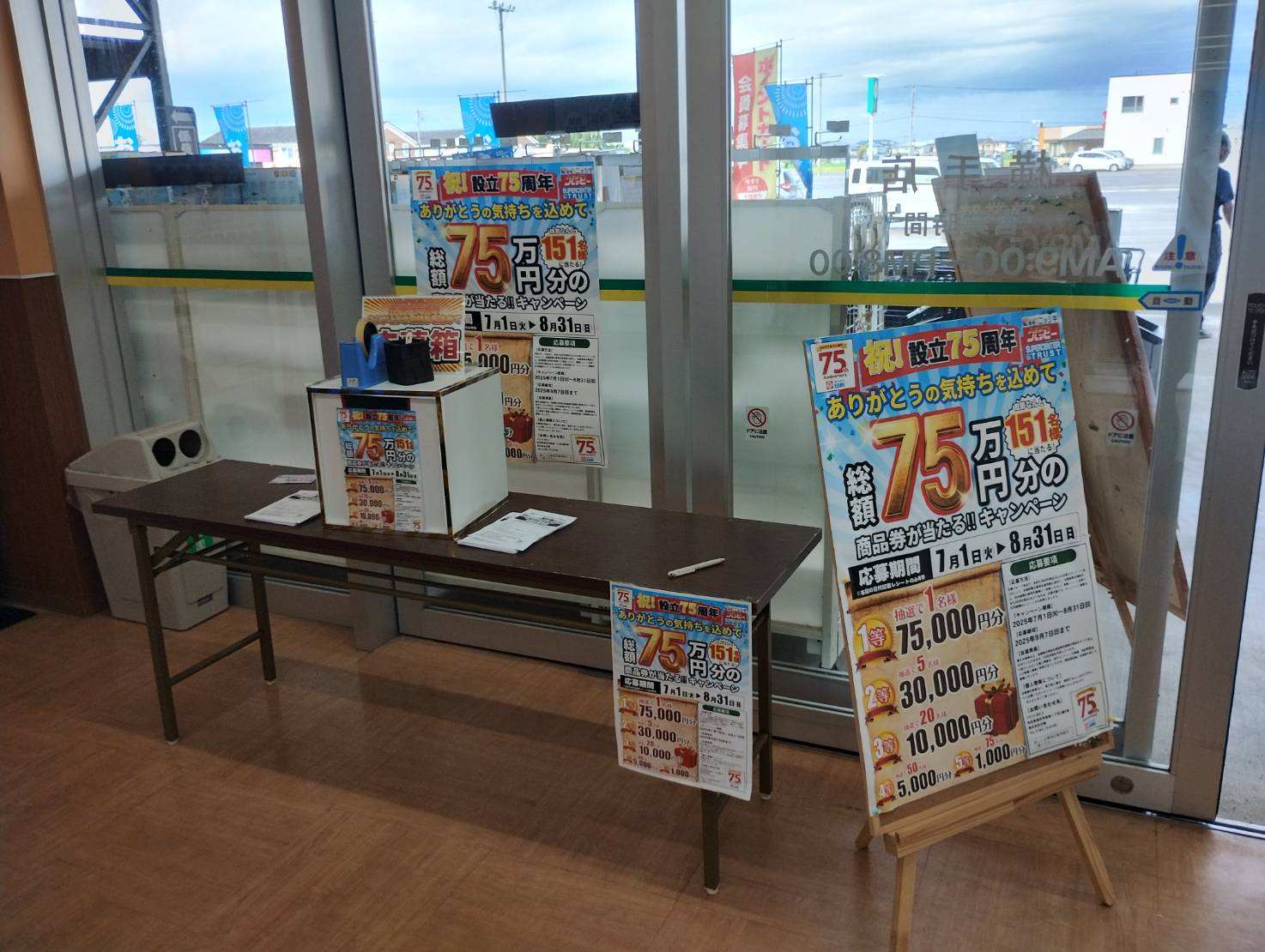 ホームセンターハッピー横手店にある物販や販促プロモーションに最適な入口近くの風除室スペースです。地域の広い年代の多くの方にご利用いただいているため多くの方に訴求することが可能です。お気軽にお問い合わせくださいませ。