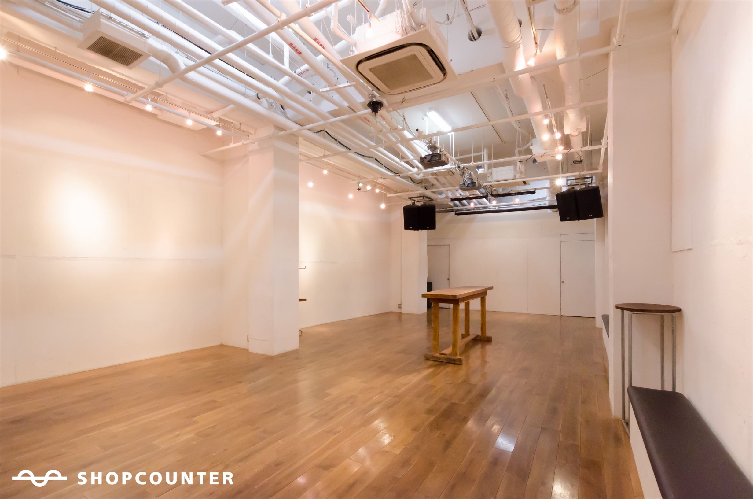 明治神宮前(原宿)から徒歩5分、渋谷駅から徒歩8分のキャットストリートに位置する、多目的なイベントスペース。渋谷・青山・原宿エリアへのアクセスのよい立地で、エキシビジョンや展示会、パーティーといったあらゆる用途にご利用いただけます。 大型作品の展示にも対応できる天井高4m超を確保。白い壁面と素敵なフロアに包まれた空間はフレキシブルにお使いいただけます。ぜひ、あなたのアイデアを発信してみませんか? 多種多様のカルチャーとムーヴメントが発信されるキャットストリートに位置し、渋谷、青山、原宿エリアからのアクセス・ポイントとして最適のロケーションにあります。『作り手』と『受け手』にクリエイティブな刺激を与えるイベントスペースです。 大型作品の展示にも対応できる天井高4m超を確保しているほか、壁面展示面積は100 ㎡以上あり、丈のある立体作品や大型の絵画、写真もゆとりをもった展示が可能です。 白い壁面と無垢フローリング材にオイル塗装されたフロアは、アパレルを始めとした展示会等にも最適です。充分な電力容量もあるため、舞台、撮影用の照明機器や映像機器等のお持ち込みも可能です。 企業様のプレス発表会やアパレルやアート作品の展示会、フィルム上映会、講演会、ゲームやVRなど幅広い内容の展示会場としてご利用頂いております。また、各種ライブ・イベントやトークショー等に対応可能な設備もご用意しております。 【利用料金(税込)】 平日:全日使用 198,000円/日 休日:全日使用 237,600円/日 平日:スチール 19,800円/時、平日:ムービー 22,000円/時 休日:スチール 23,760円/時、休日:ムービー 26,400円/時 ※全日使用の利用時間は10~22時となります。 ※1日の使用時間が4時間以上、10時間未満の場合は時間使用も可能です。 ※時間使用の場合は、スチールの利用料金をご参照ください。 【利用時間】 10:00~22:00 ※時間外利用は別料金にて相談可能です 【主な設備】 バーカウンター、家具類(パイプ椅子、ハイチェア、ハーテーブル、ベンチ等)、姿見、プロジェクター、スクリーン、簡易ステージ、ドラムセット、マイク、DJブース完備、サウンドシステムはドイツDYNACORD社製