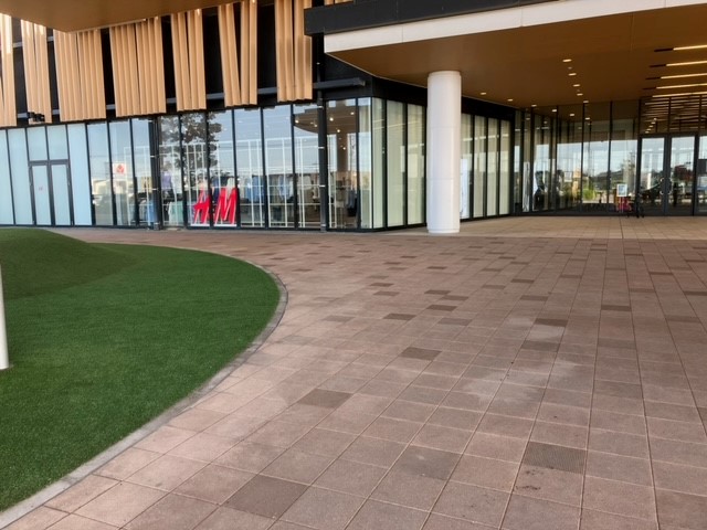 中央入口前の大庇下の場所になります。バス停の前で、新小松で一番来館数が多い入口前の場所となります。大庇がありますので、多少の雨風はしのげます。車の展示や地域のイベント、またキッチンカーの出店等が可能です。