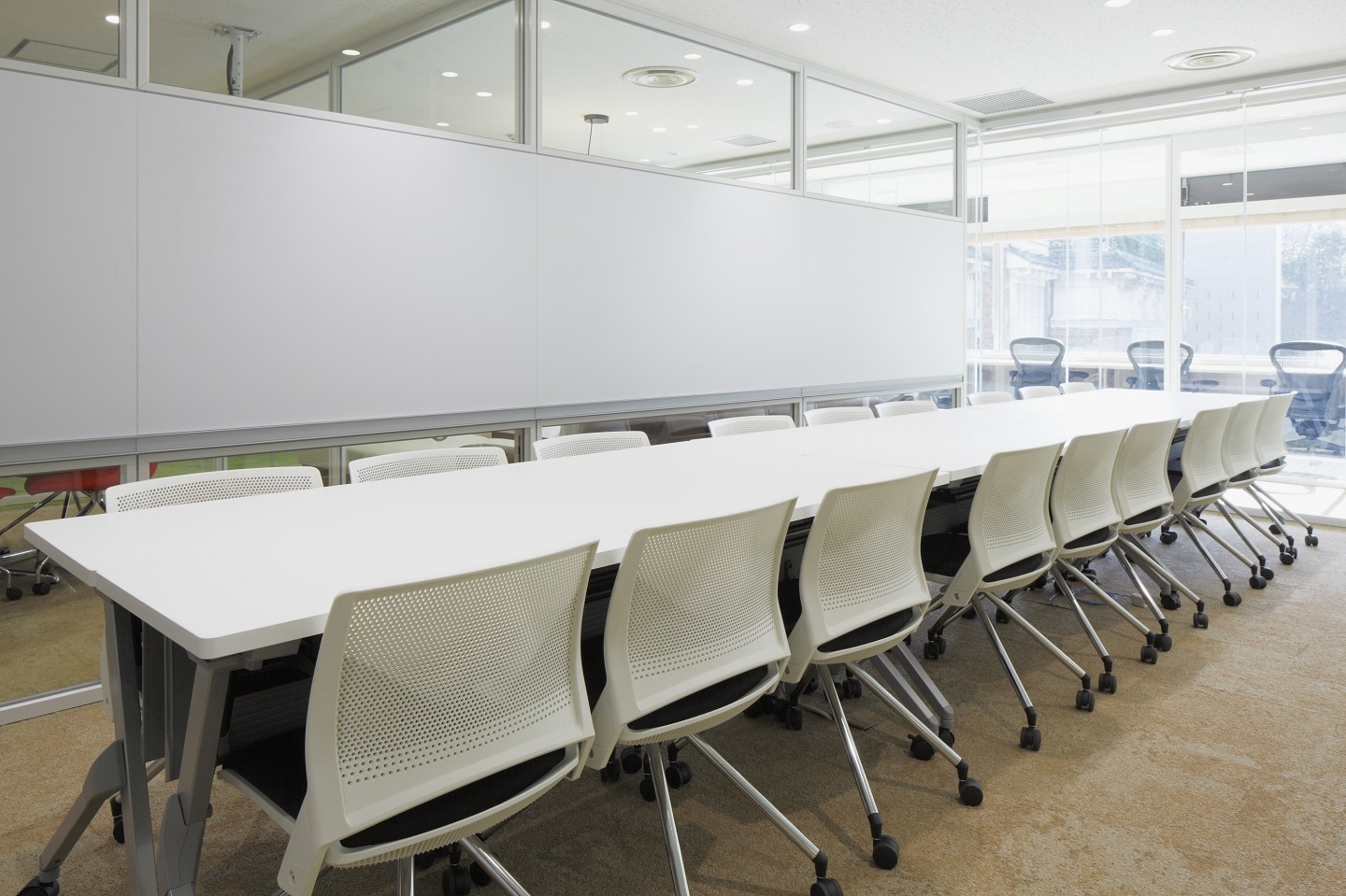 2014年3月にオープンしたばかりの、九段下駅徒歩30秒シェアオフィスです。 館内はガラス張りの部分が多く、明るく開放感がある施設となっています。 Wifi、ホワイトボード、モニター、Apple TV、ケーブル類の貸出もできます。 祝日や22時以降の深夜帯のご利用につきましてもご相談に応じますので、ご連絡下さい。 18名まで利用可能のスペースになります。 Wifi、ホワイトボード、プロジェクター、モニターの利用が可能となっております。 【利用料金(税込)】 171,600円/日は、09:00~22:00の利用時の料金です。 *時間単位でもご予約可能です* 13,200円/時 ※1時間からご予約可能 ※平日土日同一料金 このプランだけでなく、様々なサイズ・プランをご用意しておりますので、まずは気軽にお問い合わせください。