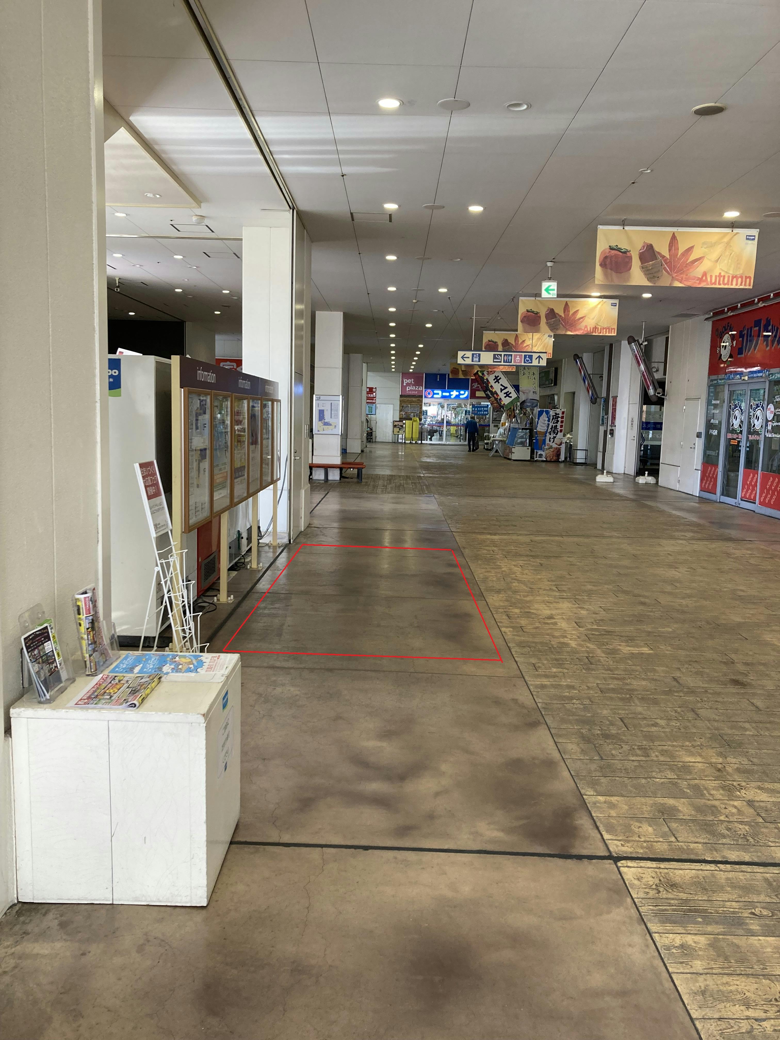 フレスポ東大阪の1F自販機前のイベントスペース(図面内③)です。PRや物販利用にご利用いただけます。お気軽にお問い合わせください。