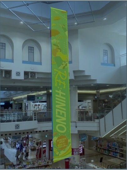 大型の迫力があるメディアです。 イベントスペースの利用等と組み合わせた展開をすることで、広告・イベント効果をより高めることが可能です。 ※全店合同プロモーション 展開時には使用できない場合がございます。 掲出箇所:吹き抜け部 掲出料(2週間):1本 20,000円(税別) ※出力・施工撤去費用別途 【媒体サイズ】W900mm×H7000mm 【仕様・素材】遮光ターポリン