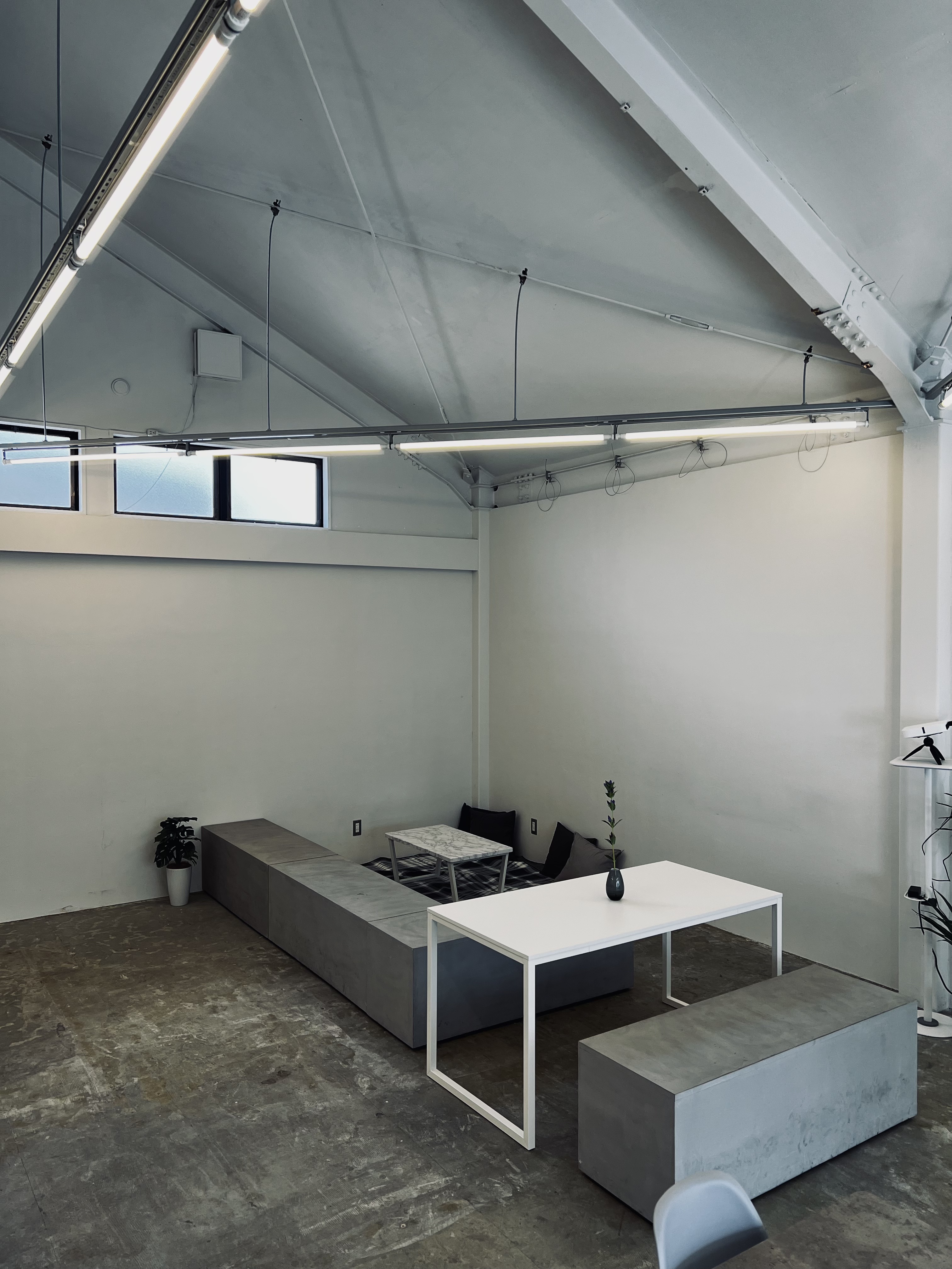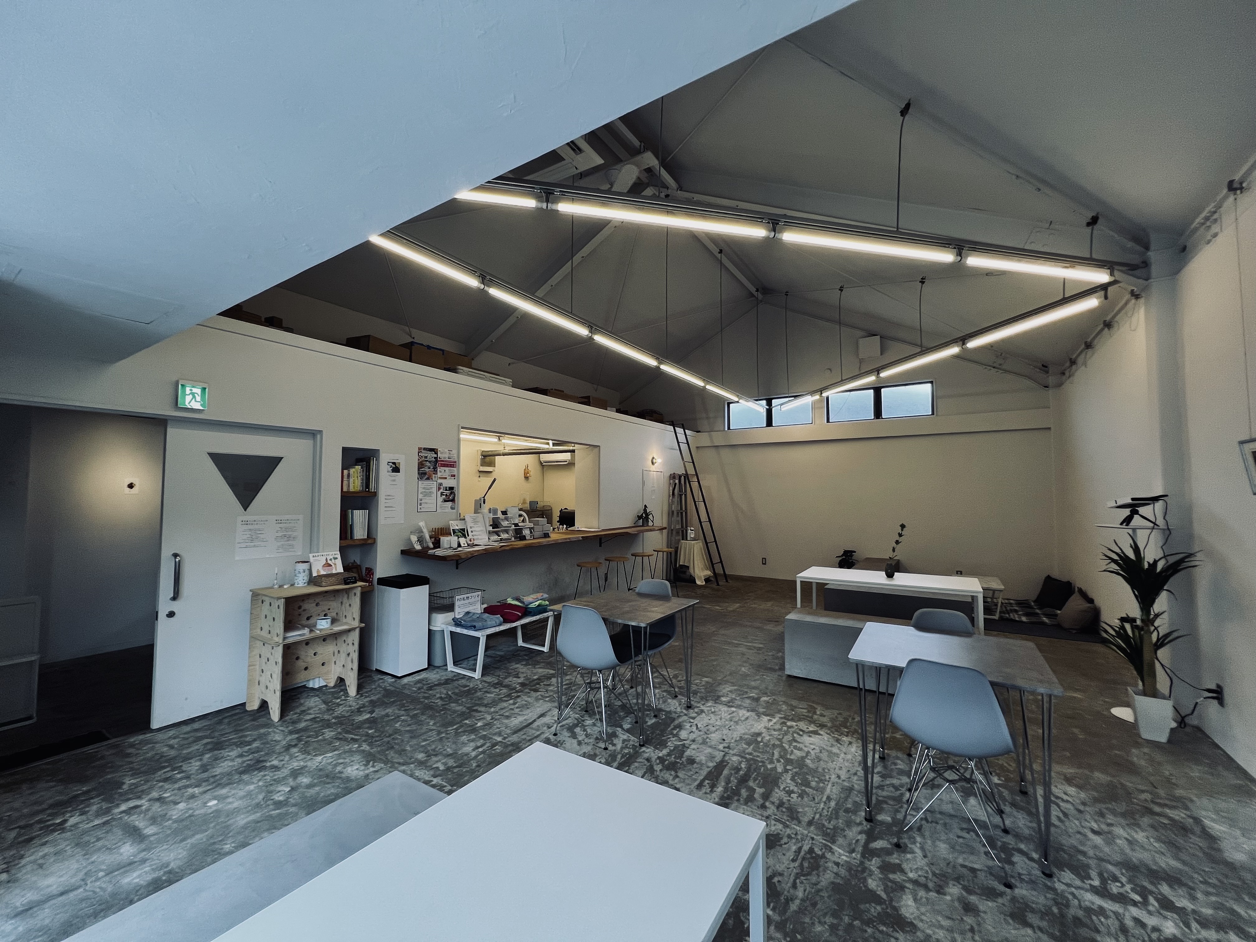 大分県別府市青山町エリアにあるカフェ併設のイベントスペースです。 白×グレーをベースにしたシンプルな空間なのでポップアップストアや展示会、ギャラリーといったあらゆる用途にご利用いただけます。テーブルやベンチもご利用いただけます。壁は3mほどの高さで天井はそれ以上あり室内でありながら開放的な空間になっております。ワークショップや撮影スタジオとしての利用も可能です。キッチン利用に関しては別途ご相談ください。お気軽にお問い合わせください。