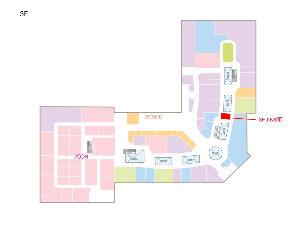 3階JINS前のブリッジスペースです。(実施例:集客イベント、ワークショップなど) ・小スペース(W3,800mm×H2,700mm) ・電源あり 100V×1口×1箇所(周辺回路 合計1,500Wまで)