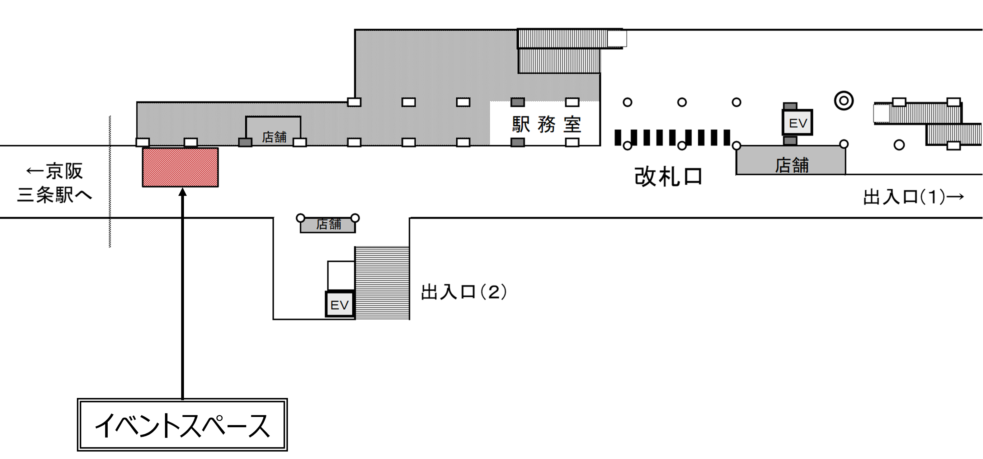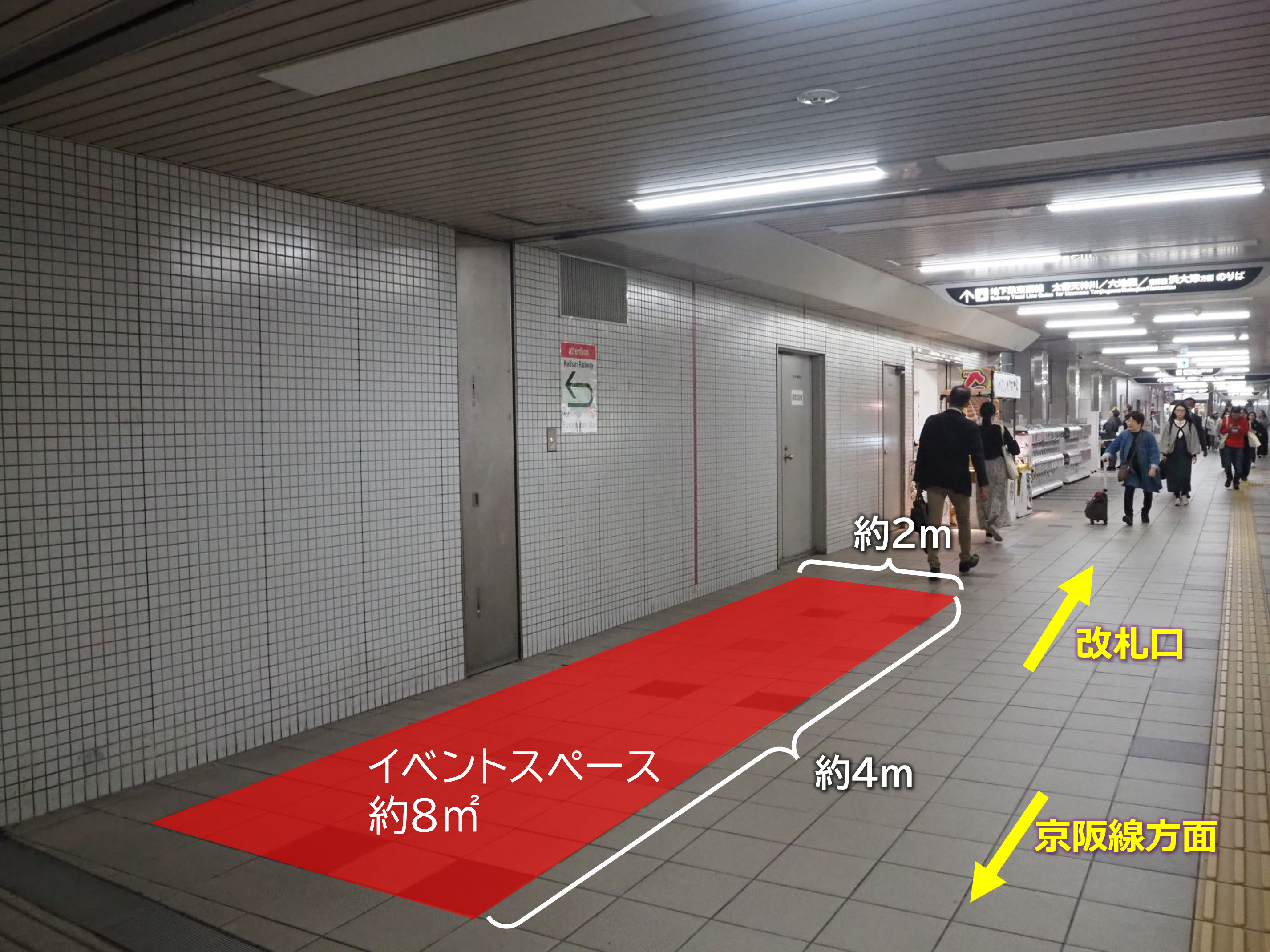 三条京阪駅は、京阪電車の三条駅と接続する乗換拠点であり、京都市内中心部の繁華街にも近接しています。これにより、平日は通勤・通学の利用者、休日は観光や繁華街を訪れる人々で賑わう駅です。 ビジネス客・観光客・地域利用者が混在する幅広い人流にアプローチできるため、プロモーションイベントなど、多様な活用に適した駅ナカスペースとなっています。 【利用条件】 利用時間は、原則9:30~20:30としますが、半日単位(4時間以内)での利用を希望される場合は、個別に協議の上対応します。(準備・撤去時間は使用時間の前後30分以内) 1回あたりの利用期間は2週間以内とします。 【キャンセルについて】 使用者の責に帰すべき理由により、使用許可を取消した時は、既納の使用料は全額返還しません。