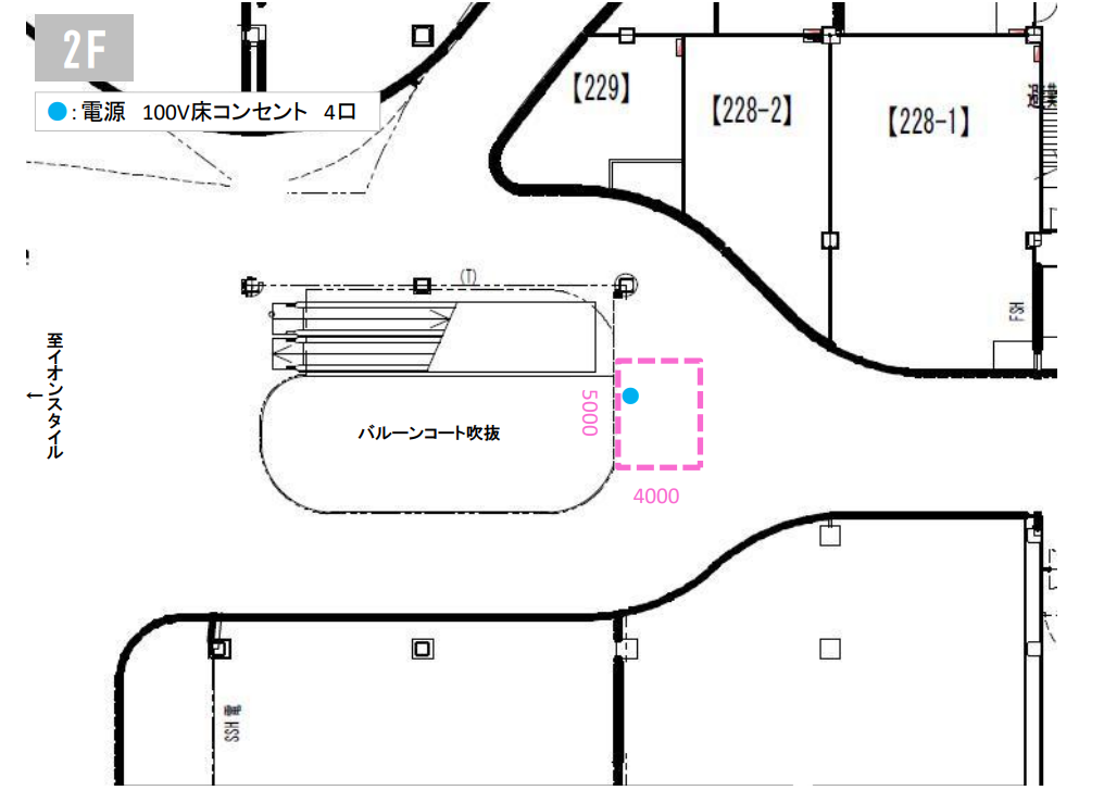 バルーンコートの2Fに位置し、イオンスタイルとなみに近いスペースです。2F会場の中で最も広いスペースが確保できます。