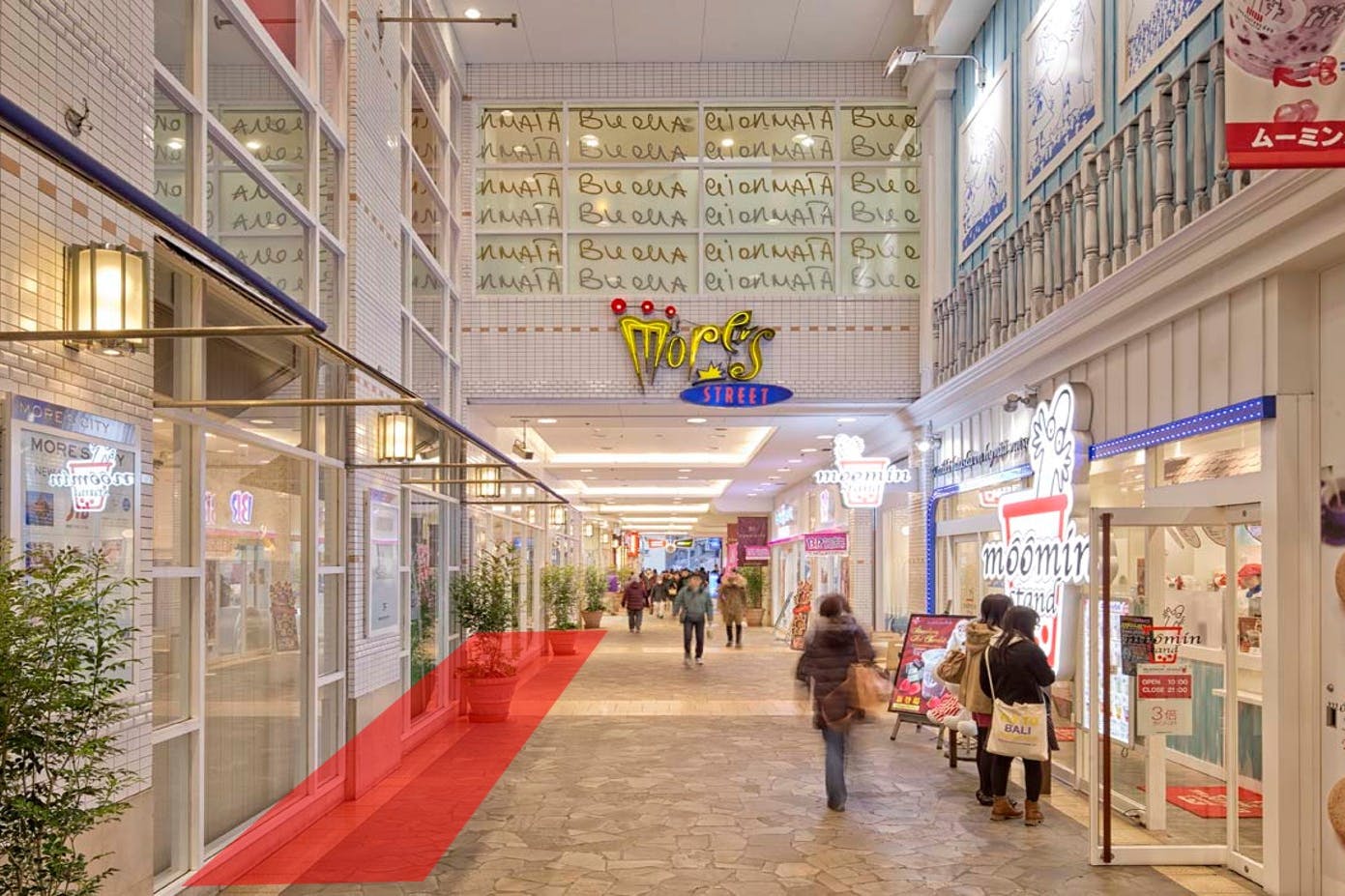 *防火扉やシャッター、館内広告物など既存設備に支障がないように什器は設置すること