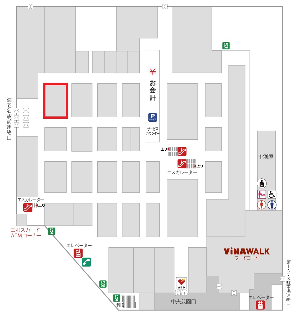 【お問合せ前に下記内容を必ずご確認のうえお問い合わせください】 ・料金・営業時間 ・利用可能用途 ・設備・什器 ・受付期間 ・利用の流れ ・注意事項 ・キャンセルについて *お問い合わせへの返信は3~5日以内を目途に順次ご返信致します *電話での問い合わせは受け付けておりません *記載のある内容への質問はご返信出来かねます *施設都合により6か月先までの受付とさせていただいております *原則、実施希望日を指定の上、お問合せください *実施可否業種は「商材・ブランド別のスペースご利用可否」をご覧ください *出店には審査があり、弊社基準においてお断わりをする場合がございます *出店をお断りする際の基準などに関してはお答え出来かねます 海老名マルイはビナウォークの3番館としてファッション・雑貨・ホビーグッズを中心に生鮮食品も扱う食遊館を有したライフスタイル密着のファミリー型店舗です。年間来館数は600万人で30~60代の幅広いお客さまに来店いただきます。海老名駅とペデストリアンデッキで直結しておりアクセスも便利です。 【本スペースについて】 1階の食品売り場にあり、お客さまの来訪が多いフロアとなっております。 区画内に厨房があり、作り立てを提供することができます。 【フロアマップ】 本スペースのフロアマップの詳細については、下記URLよりご確認頂けます。 https://www.0101.co.jp/082/info/?from=01_pc_st082_top_head-floor