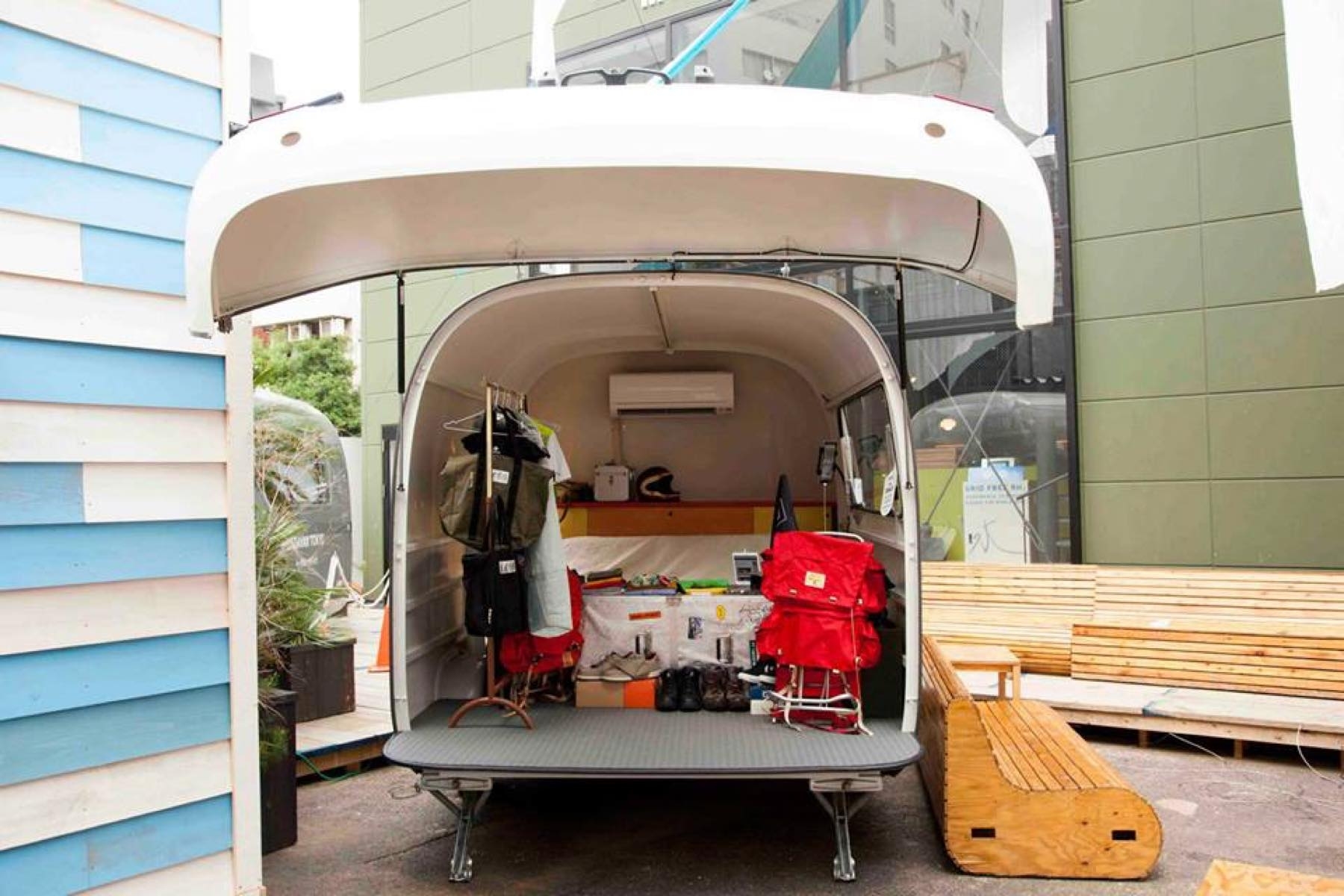 表参道駅から徒歩2分のCOMMUNE246を舞台にキャンピングトレーラー「ルーメット」を使って、展示会やポップアップストアを開きませんか?アパレルのプロモーションとして走行したり、移動することも可能で、新しいプロモーションの一つとしてアパレルメーカーなどにご活用いただいております。 表参道駅から徒歩2分のCOMMUNE246を舞台にキャンピングトレーラー「ルーメット」を使って、展示会やポップアップストアとしてご利用いただけます。 卵の殻を思わせる有機的なルックスにあいまって、ルーメットの車内は曲面に覆われ印象的な雰囲気を醸し出します。またテールゲートという開閉できるハッチによって搬入出は簡単! Mobile Showcaseならではなクリエイティビティを発揮できます。また展示スペースには、ルーメットを使わずに車両を持ち込むことも可能です。 ※飲食物の販売およびサンプリングは内容により一部調整が必要となります。 ※前日搬入・後日搬出は、別途料金が発生いたします。 ※ライブ演奏、大音量等でのご利用は禁止とさせて頂きます。 ※火気厳禁。 利用事例:https://shopcounter.jp/library/success-story/1153/