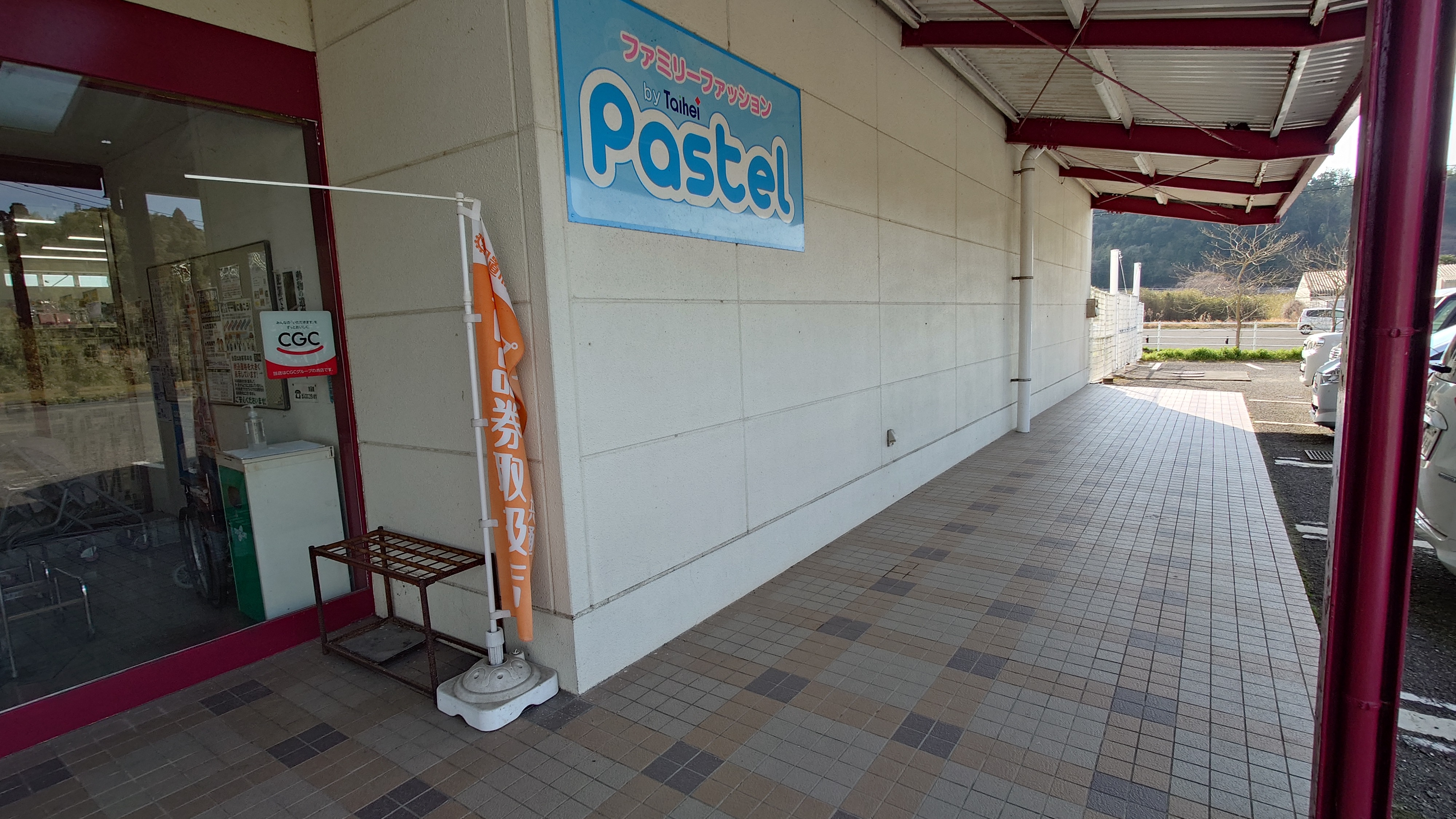 日置市吹上町で唯一の大型店として地域に親しまれるスーパーマーケット「タイヘイ吹上店」の、正面西側にある軒下スペースです。食品売場側の玄関前に位置しており、来店客の動線上で目に留まりやすいのが特長です。 屋外区画のため、キッチンカーでの出店にも対応しやすく、テイクアウト販売や試食提供などの催事に向いています。駐車場が広く、週末は広域からの来店で客数が増えるため、短期のプロモーションにも活用できます。電源も利用できる(電気代別途)ので、保温機器や冷蔵設備を使う販売形態にも対応可能です。 希望日程の空き状況など、お気軽にお問い合わせください。