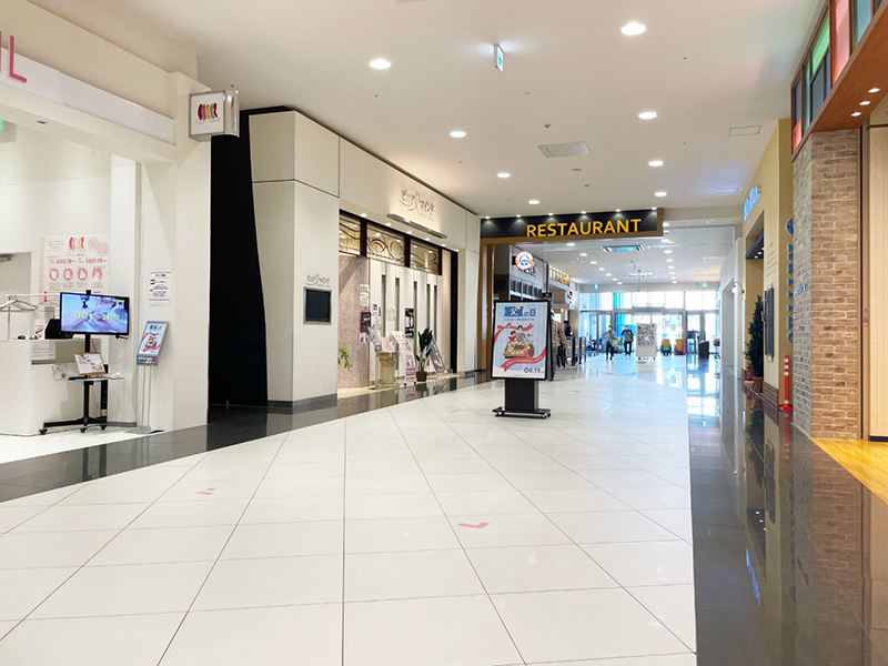 レストランメイン入口に近い催事場です。 食物販イベント・アンケート等に最適です。 館内の食品を扱うテナントとの商品バッティングは不可となっております。 ※GW期間中(4/25~5/10)は使用料が10%増となります。