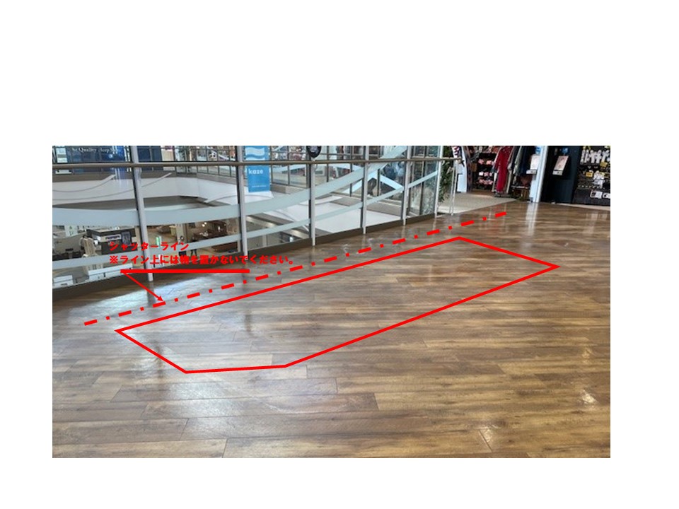 3F 時の広場吹き抜け付近にあり。2025年4月よりイベントスペース公開しました。 PR用ブースの設置、パネル展示、物販催事実施可能な場所。 面積 4.82坪(15.92m²) 使用料 【平日】100,000円(税抜)/日 【土日祝】200,000円(税抜)/日 【アプリプッシュ通知付】+100,000円(税抜)/日 特徴 ・小スペース、シャッターラインあり ・電源あり(100V) ・最大使用電力(1500W)